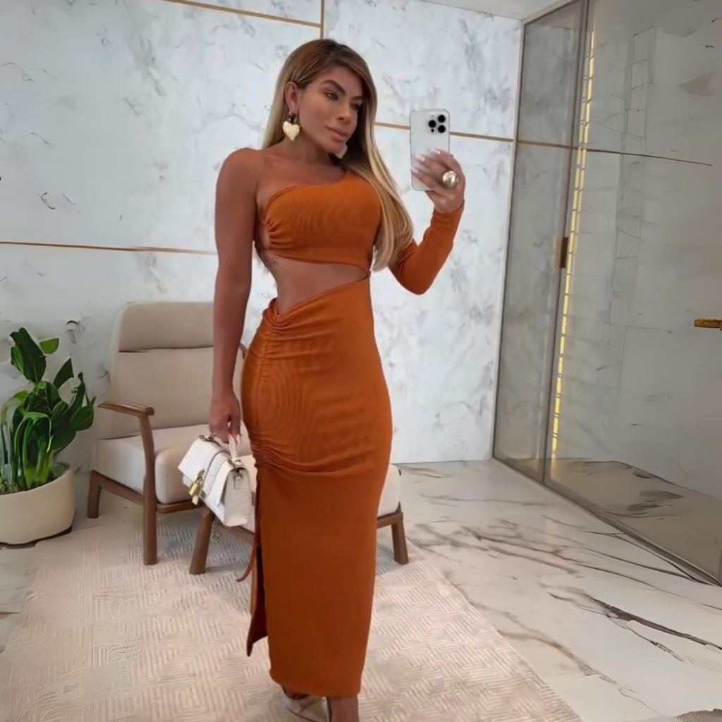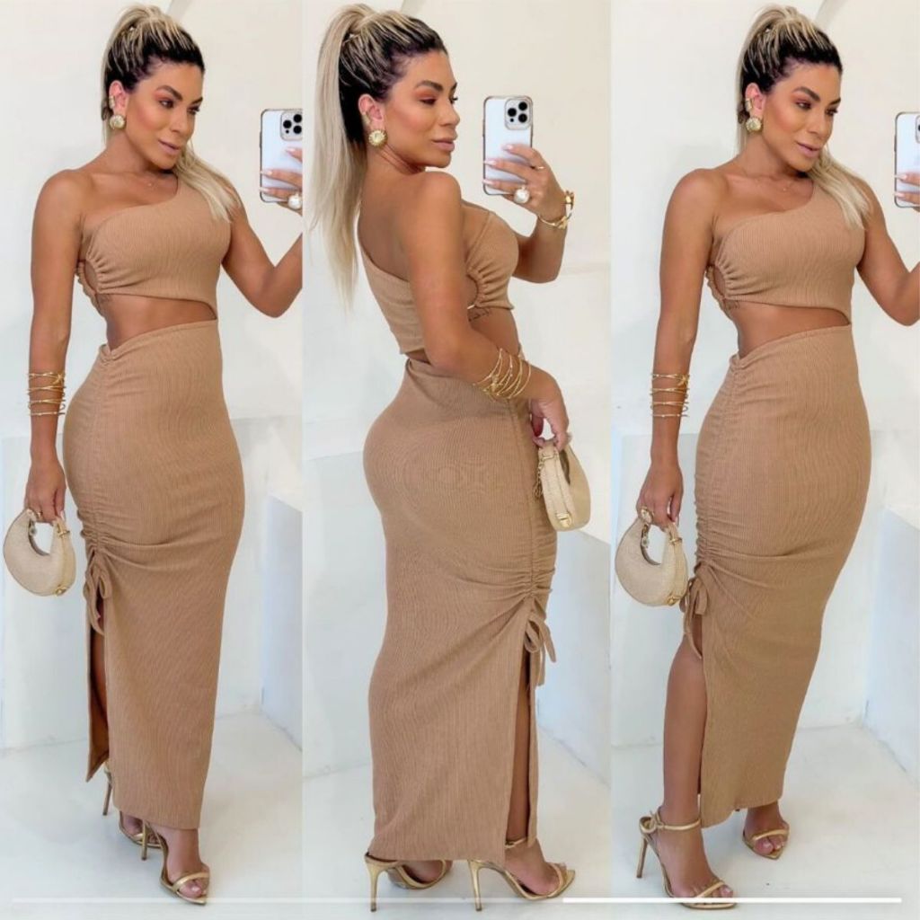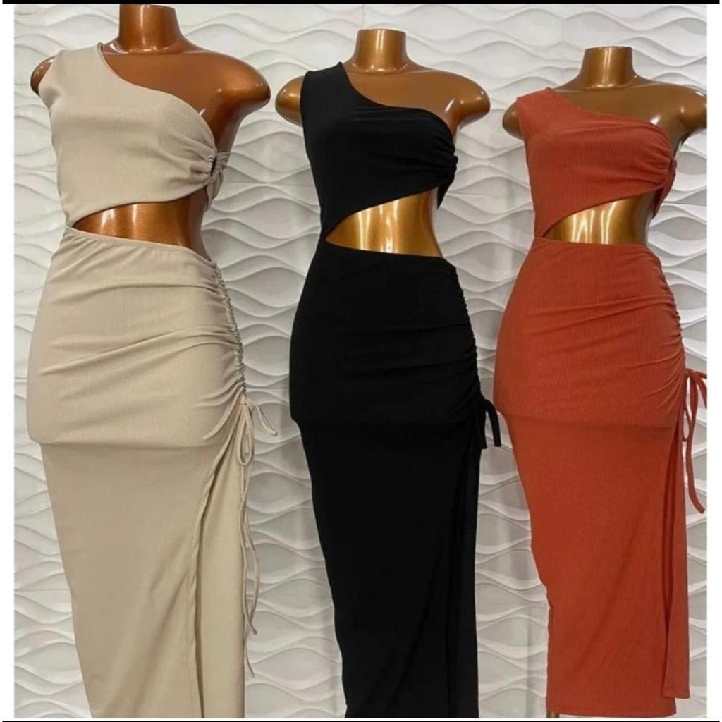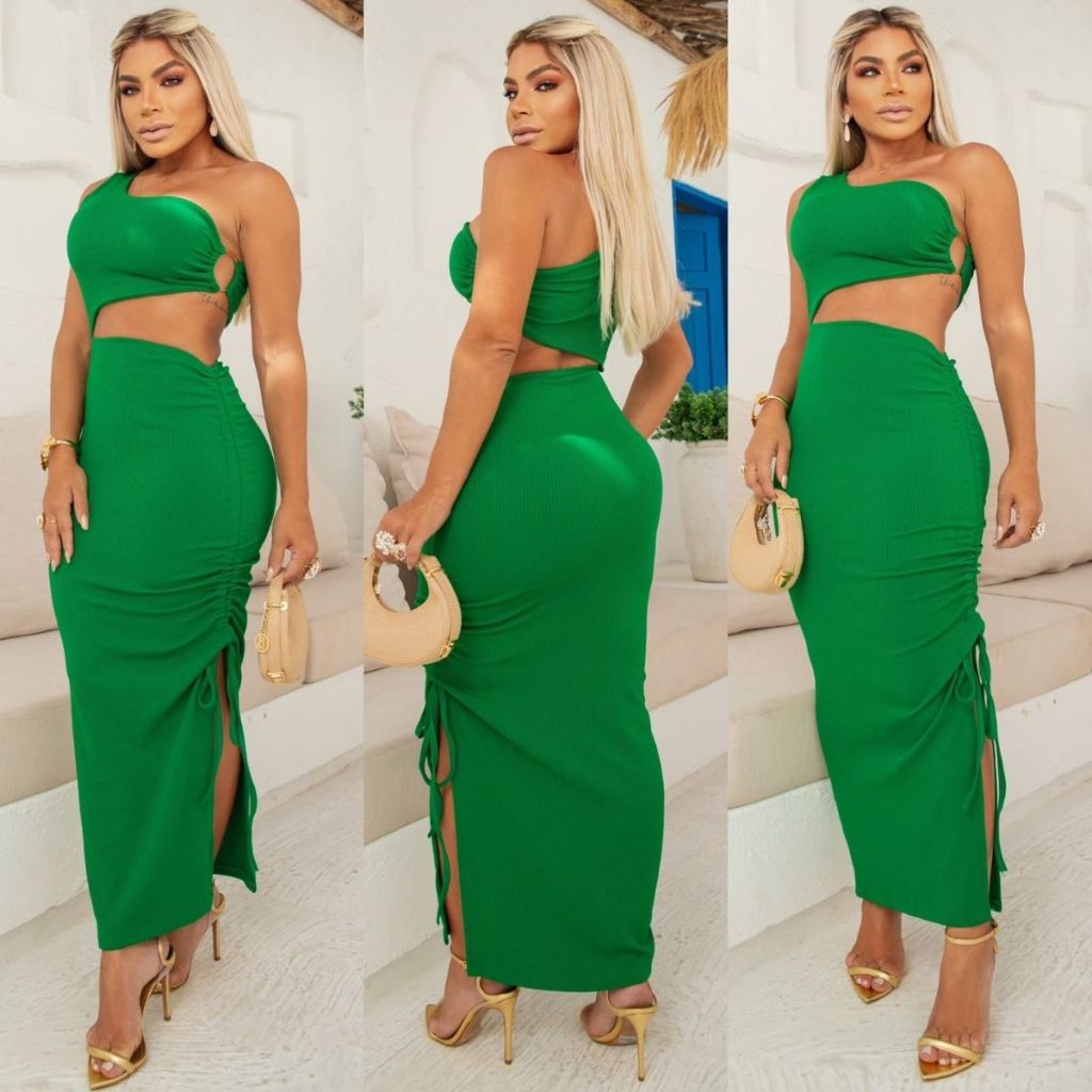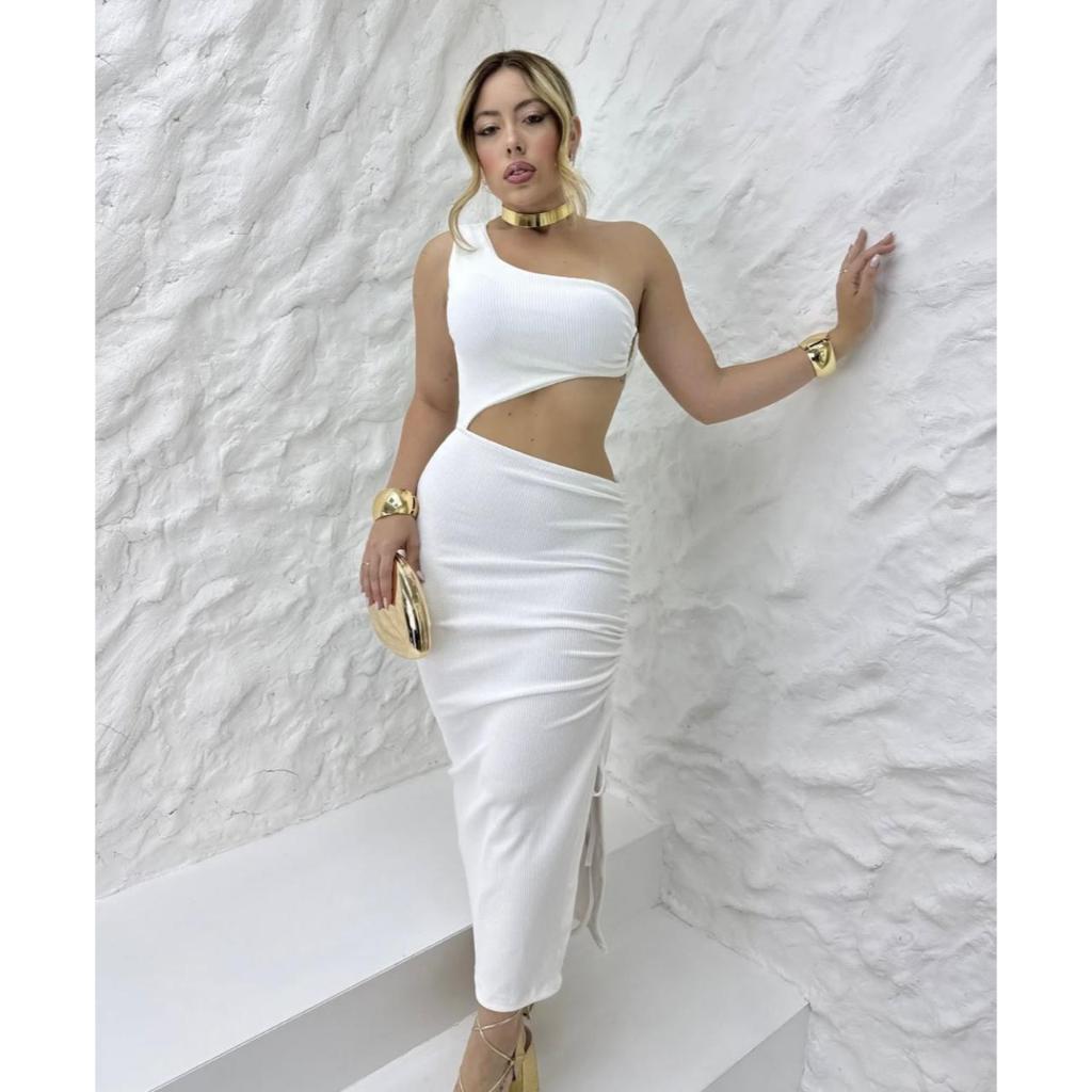 Vestido Blogueirinha Longo Grécia Moda Griga com Fenda Lateral