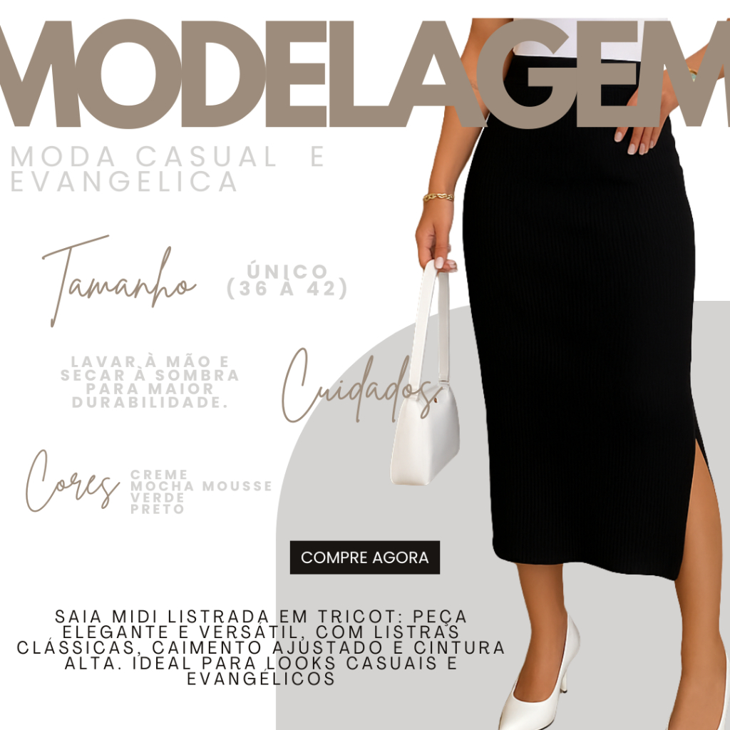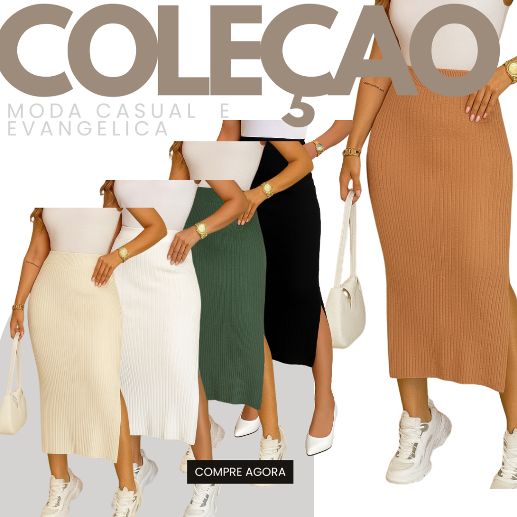Saia Midi Tricot Fenda Lateral Moda Verão Saia Longa Feminina Moda Evangélica