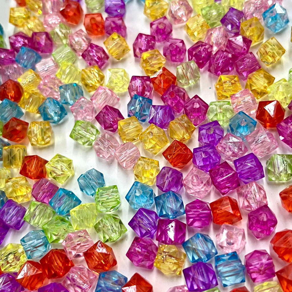 180pcs Cor Transparente Contas Quadradas Multifacetadas