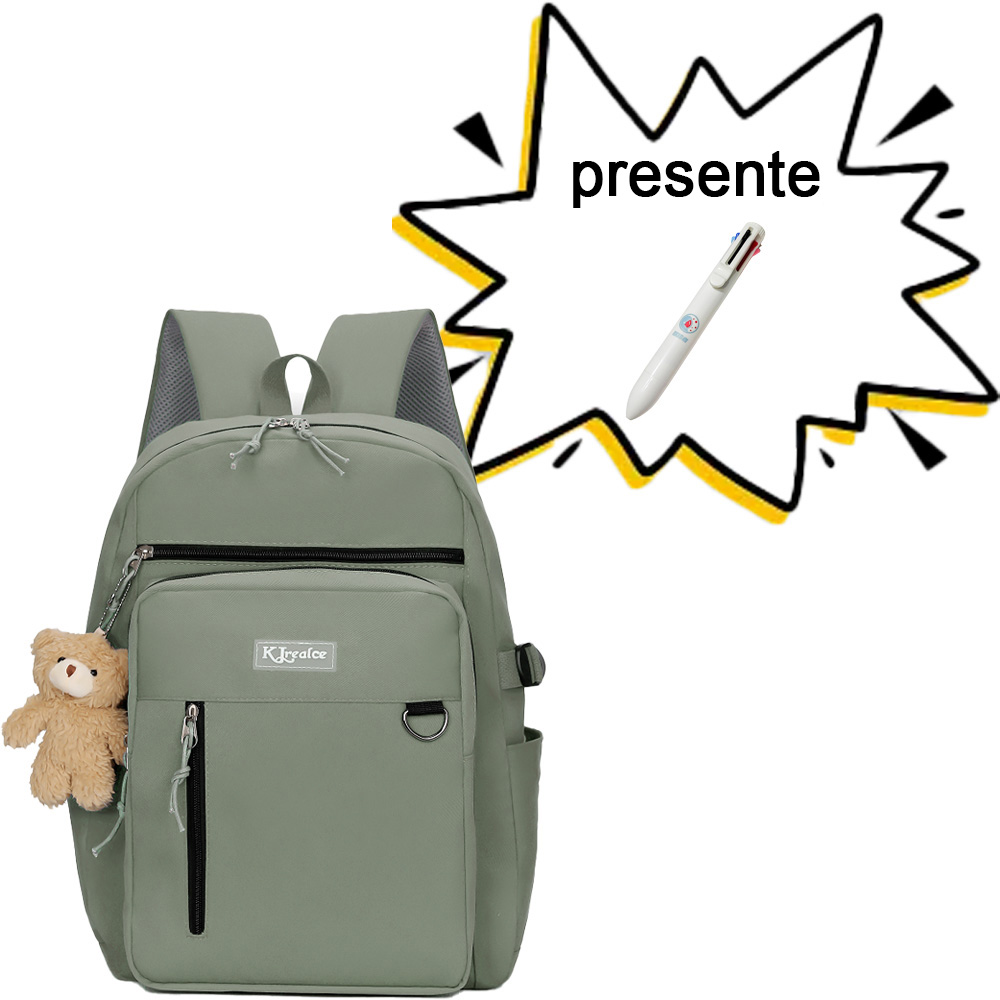 Mochila grande universitária coreana impermeável e durável com bolso + ursinho de pelúcia
