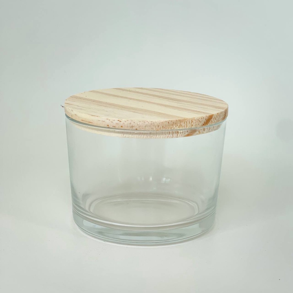 Kit 02 Unidades Copo Vidro Tampa Madeira Velas Artesanais 150mL