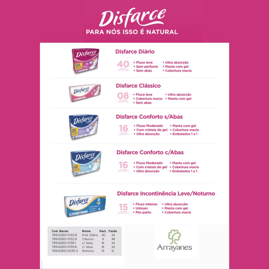 Disfarce Absorvente Incontinência Leve - 12 Pacotes - 180 Unidades - Cod. 596