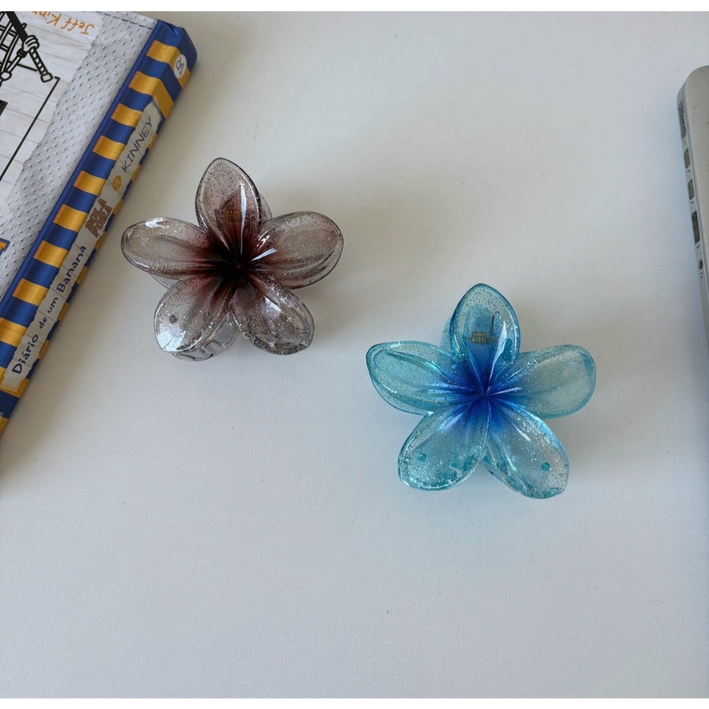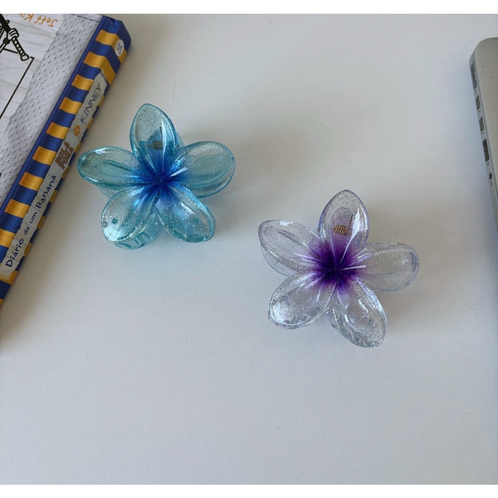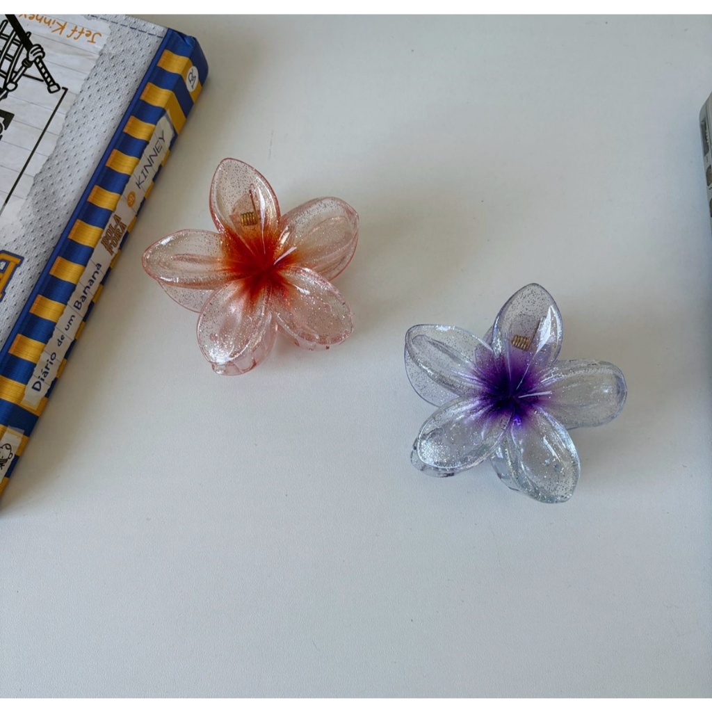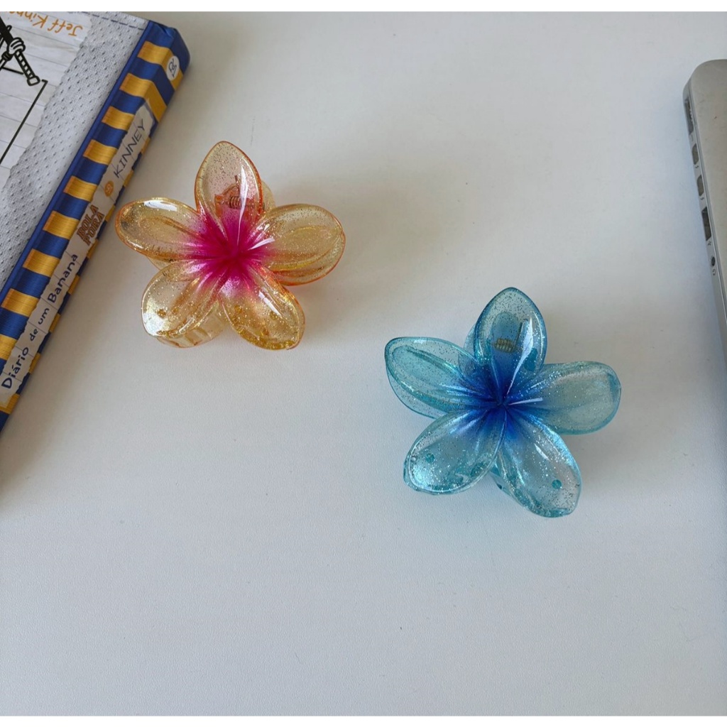 🌸Presilha Flor Transparente Colorida Brilhante • Acessório Cabelo Moda Praia - 8CM