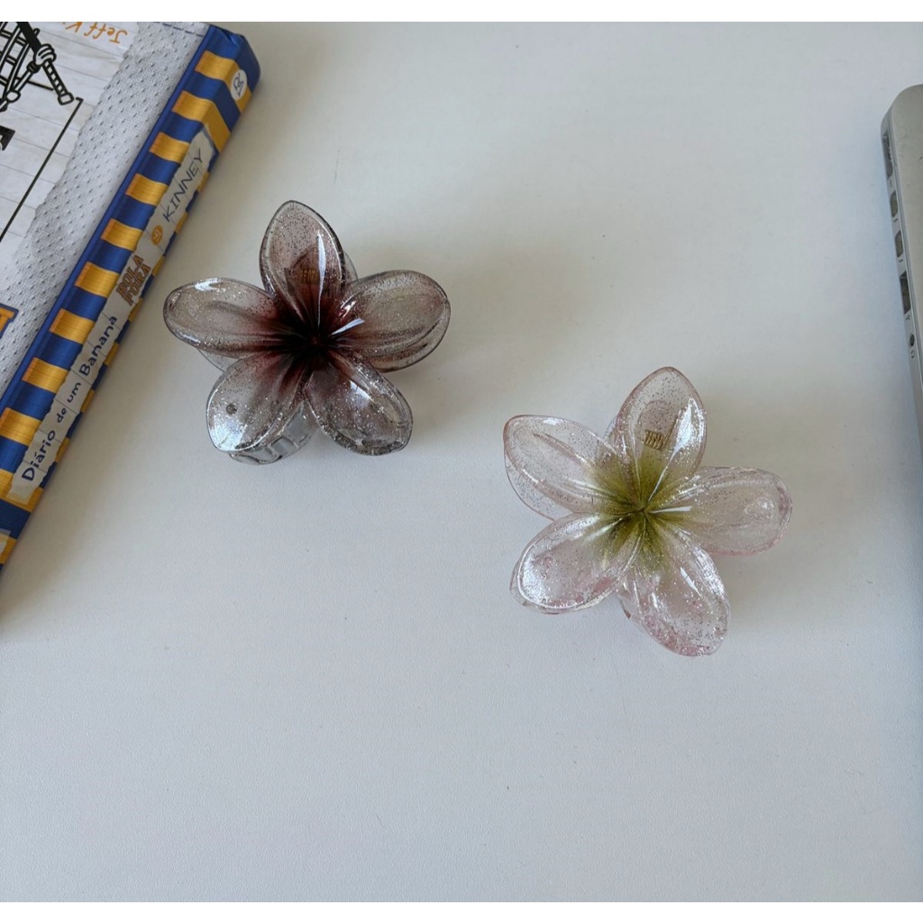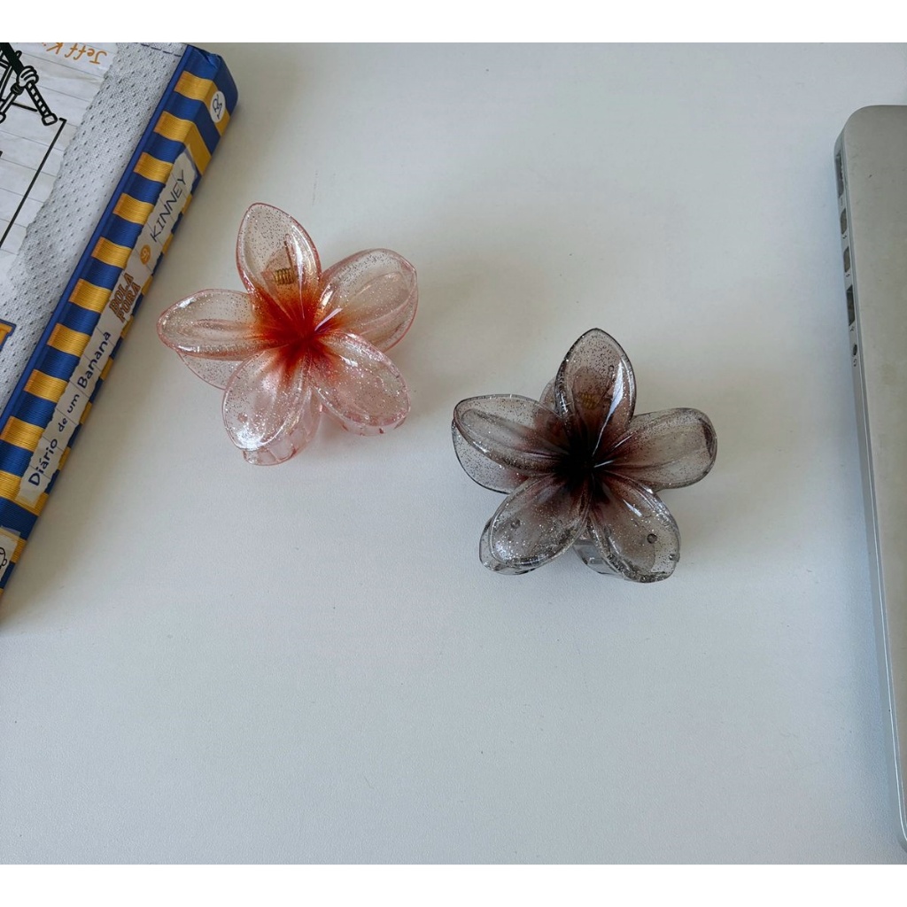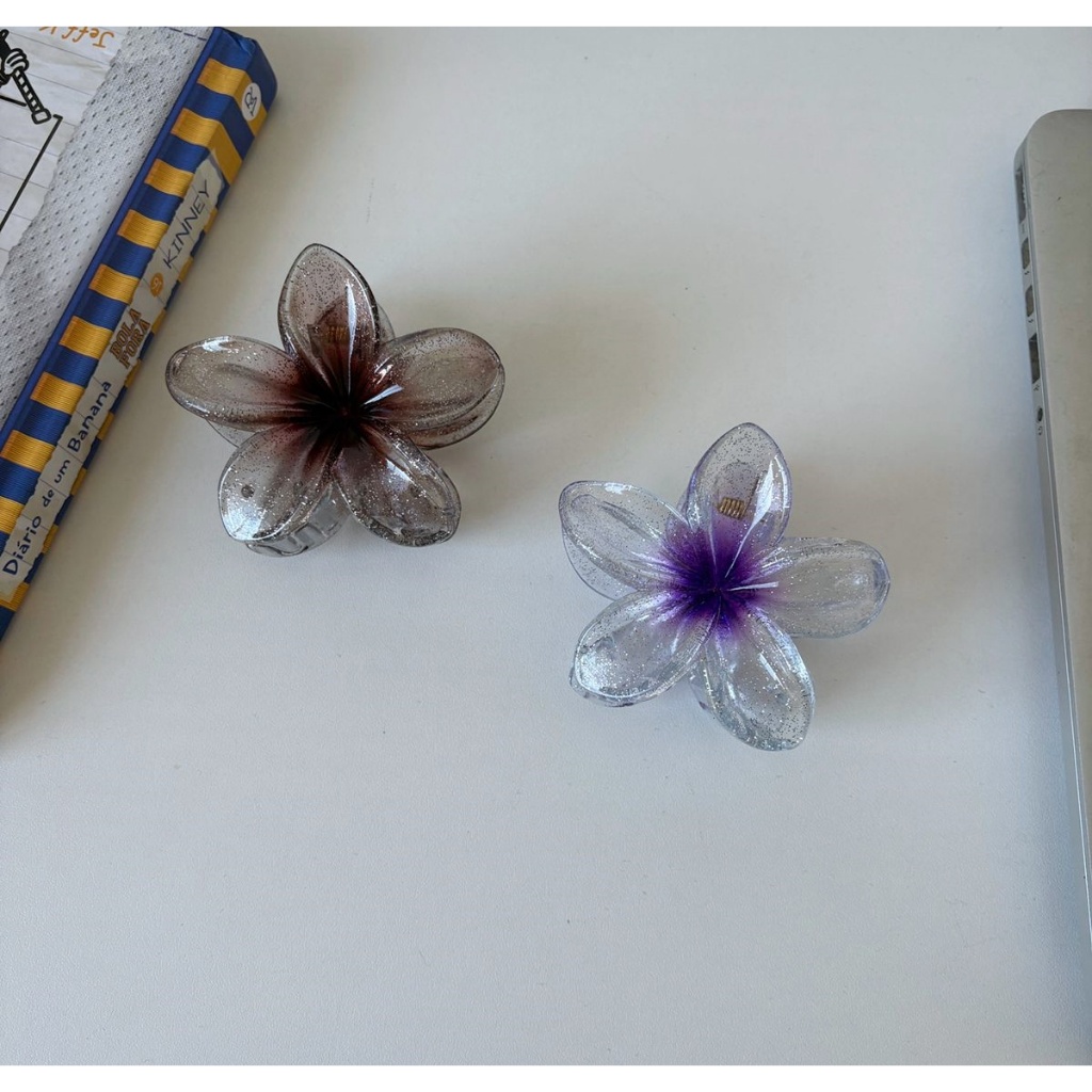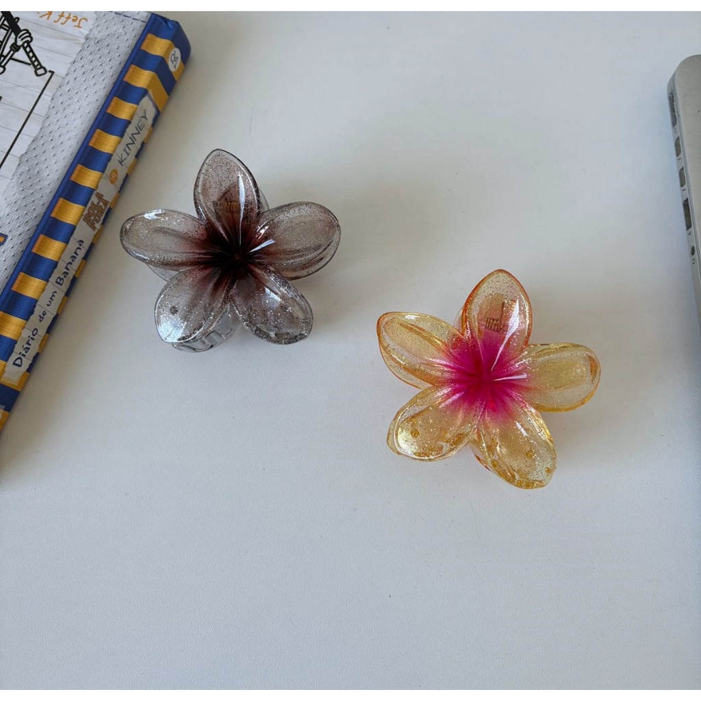 🌸Presilha Flor Transparente Colorida Brilhante • Acessório Cabelo Moda Praia - 8CM