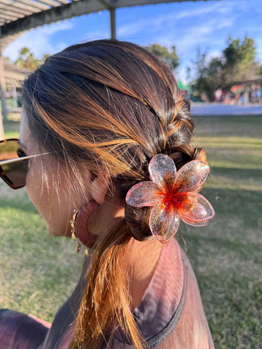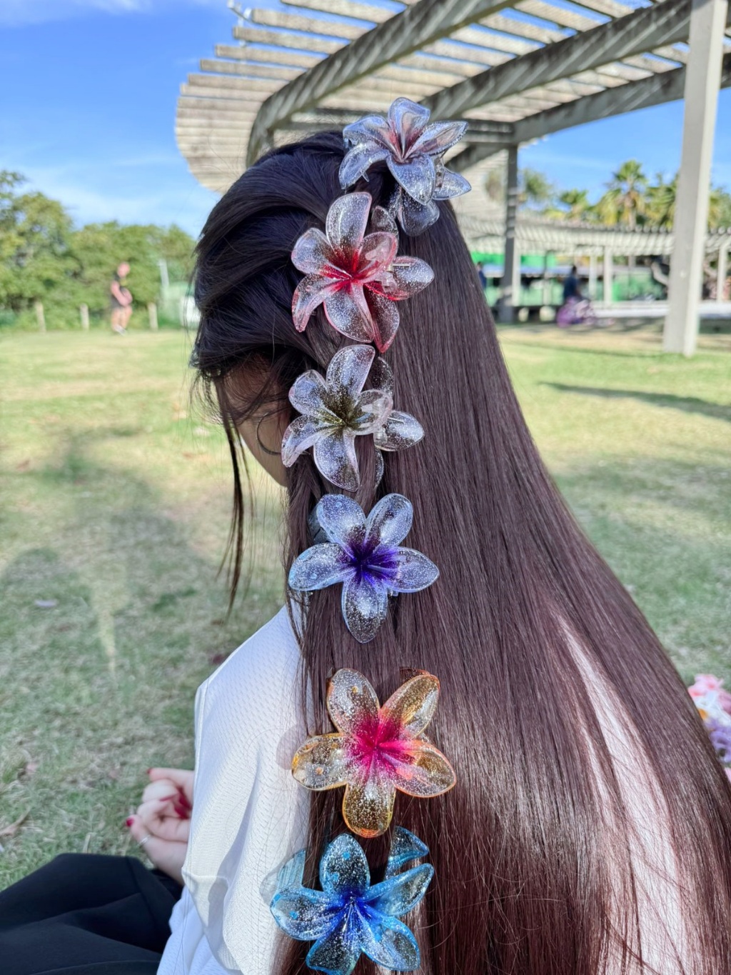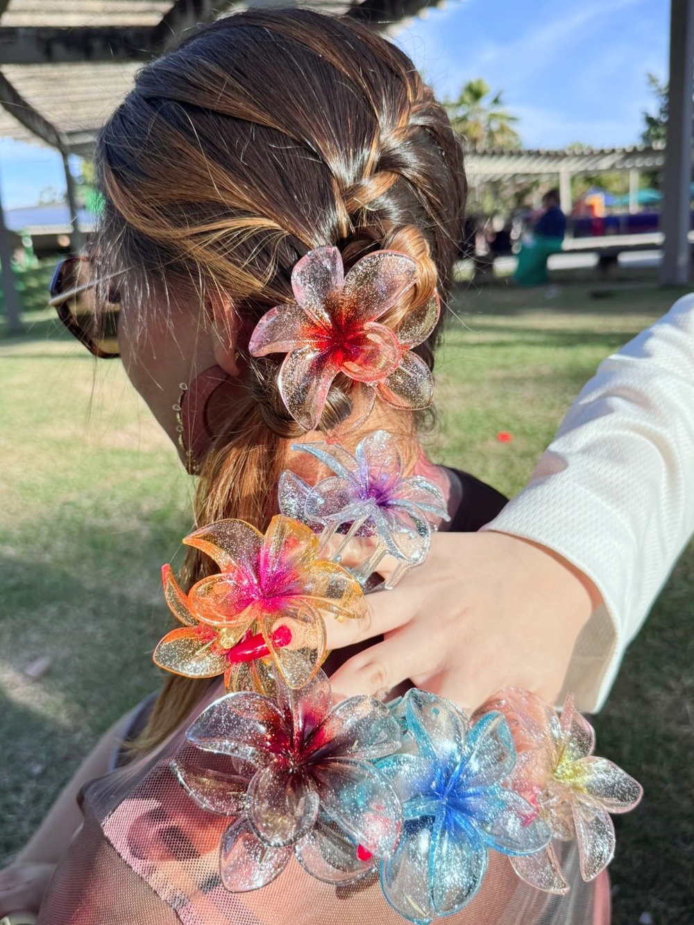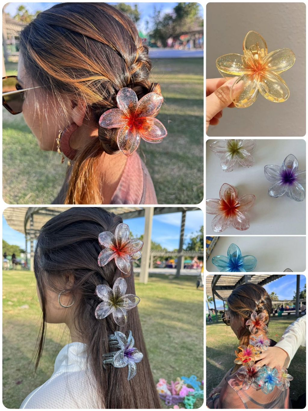 🌸Presilha Flor Transparente Colorida Brilhante • Acessório Cabelo Moda Praia - 8CM