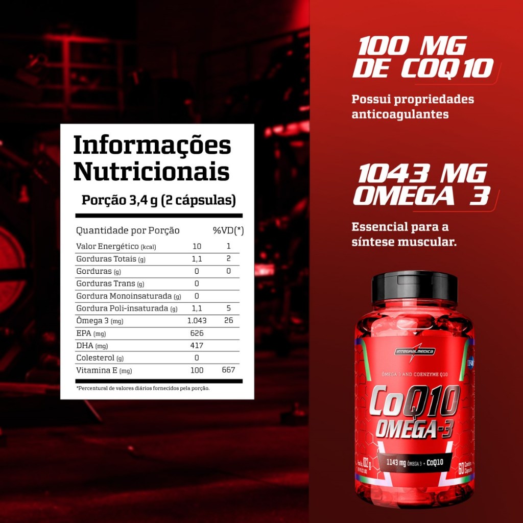 Integralmedica CoQ10 + Ômega 3 - Suplemento Alimentar Funcional - Ação Antioxidante - 60 Cápsulas