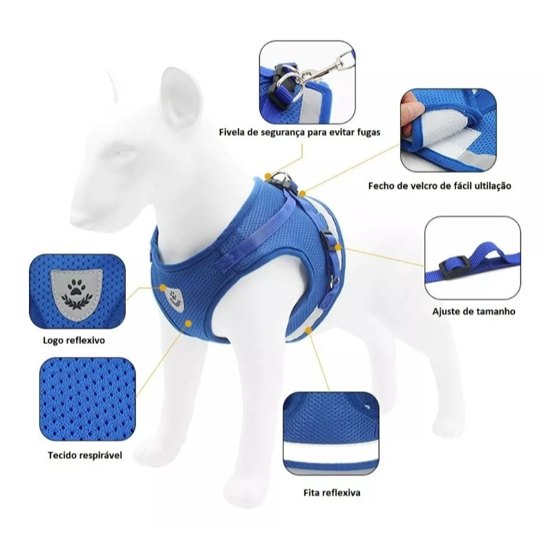 Peitoral Coleira Com Guia para Caes E Gatos Regulavel Confortavel Ajustavel Cachorro Pet Pequeno