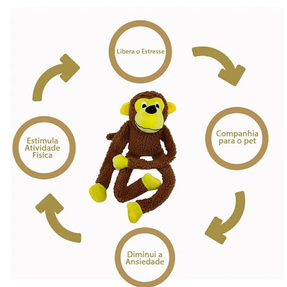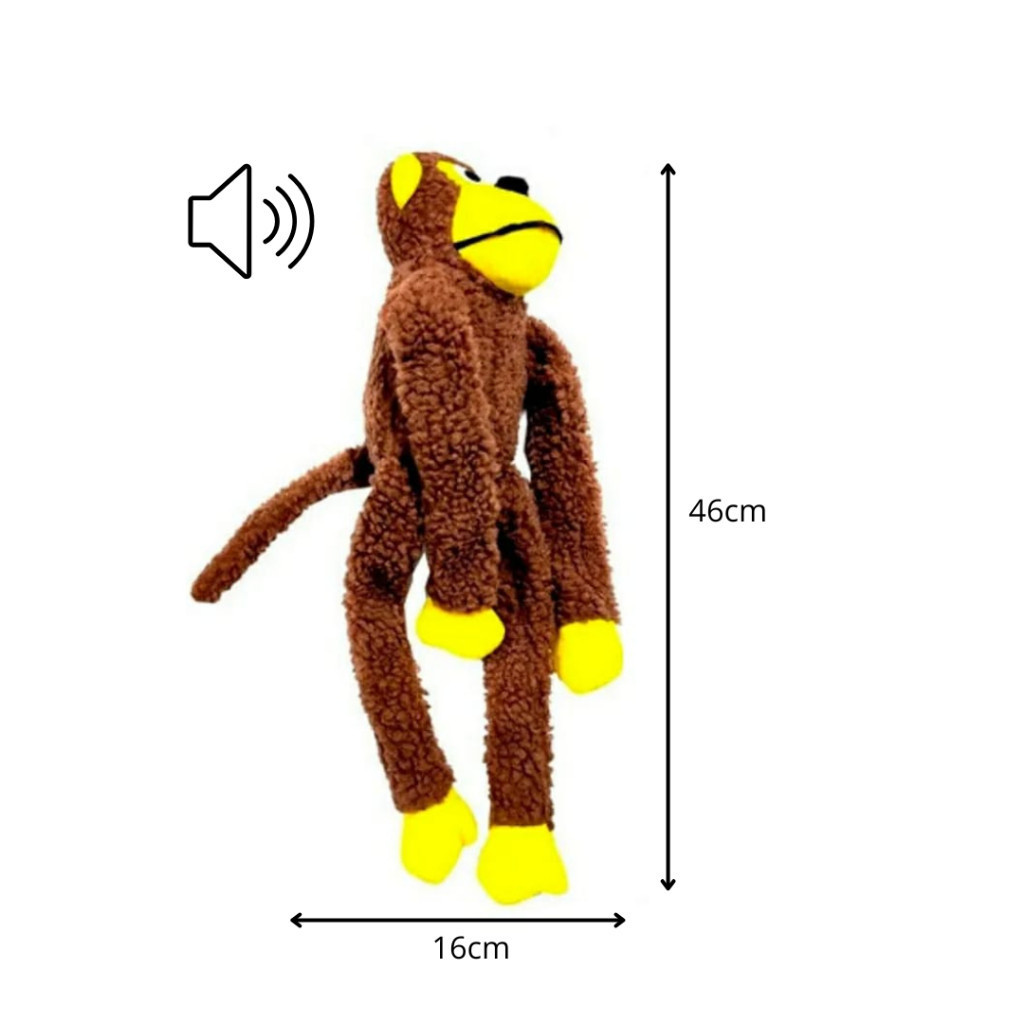 Brinquedo Cachorro Pet Mordedor Macaco Macaquinho Kong de Pelucia com Apitos e Olhos Bordados