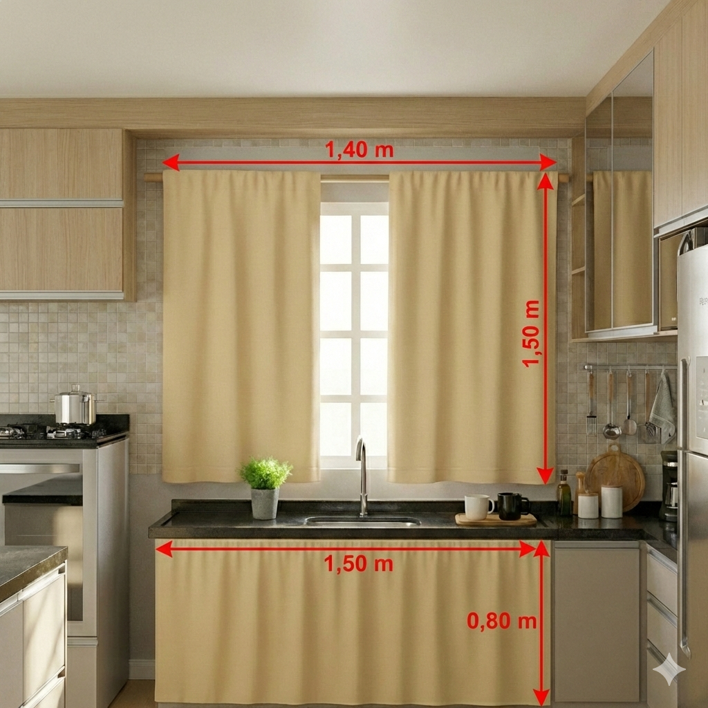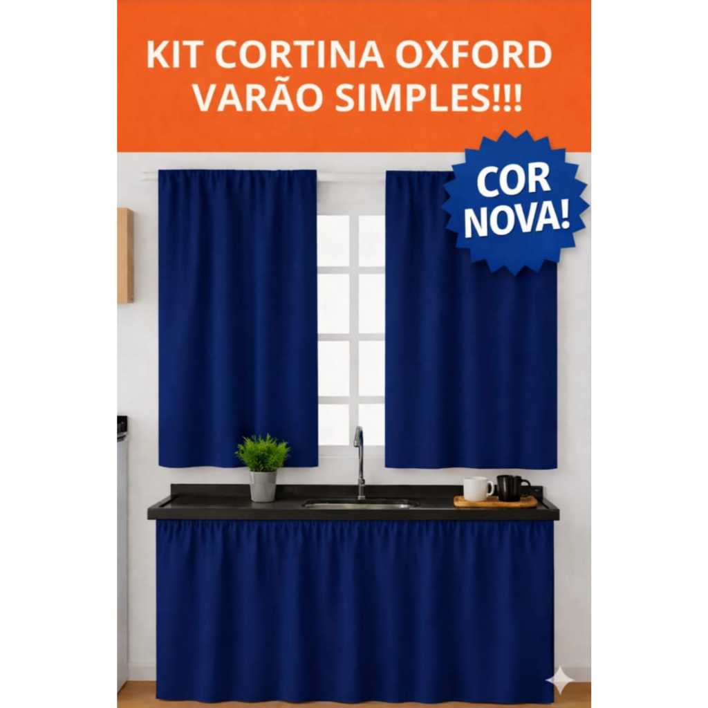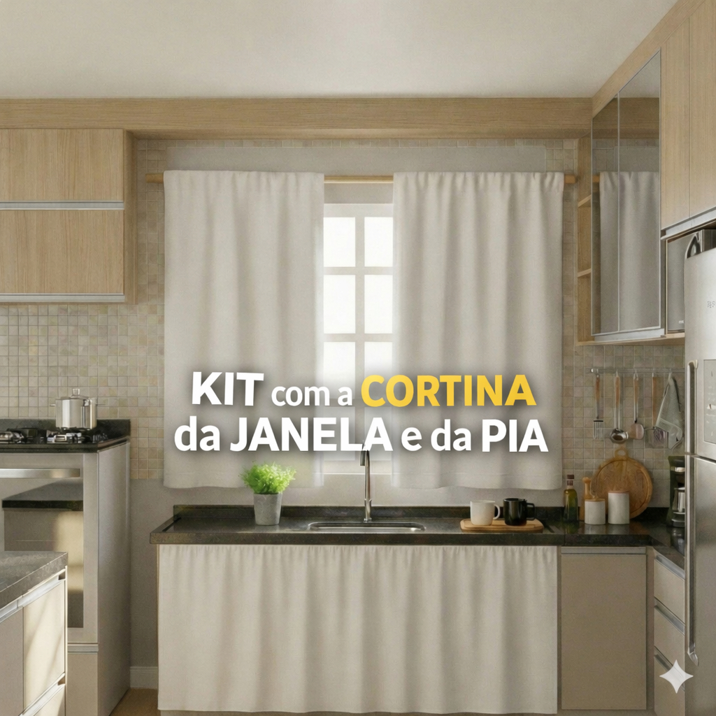 Cortina Pra Cozinha Kit Janela e Pia Simples Oxford