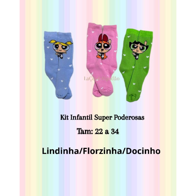 Meias Meninas Super Poderosas Meias Divertidas Cano Longo Meia de Algodão