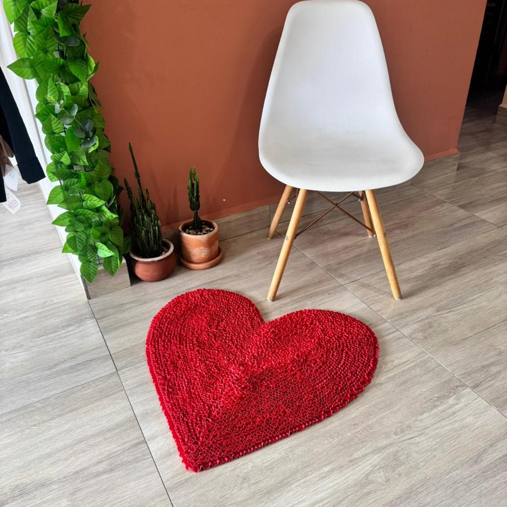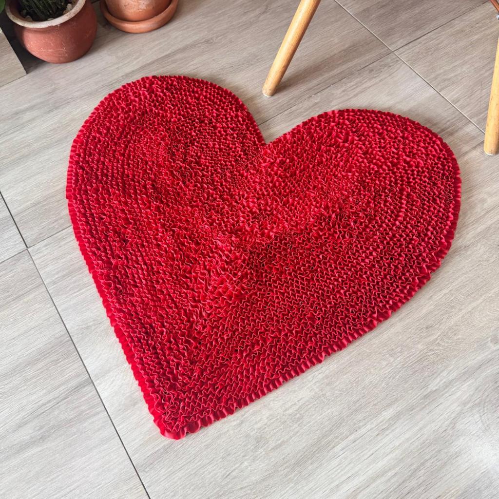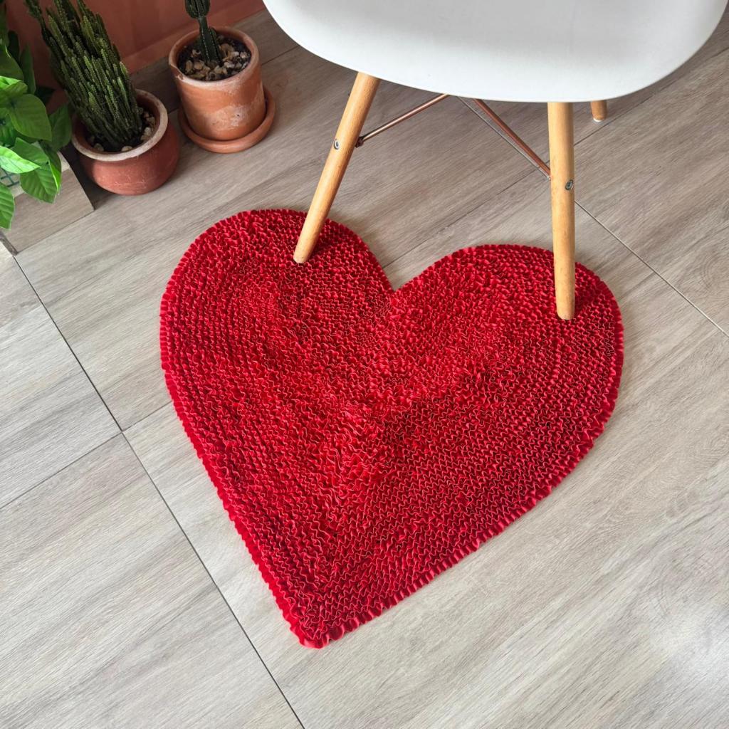 Tapete Coração Vermelho 60x60cm Antiderrapante Decorativo para Quarto e Sala
