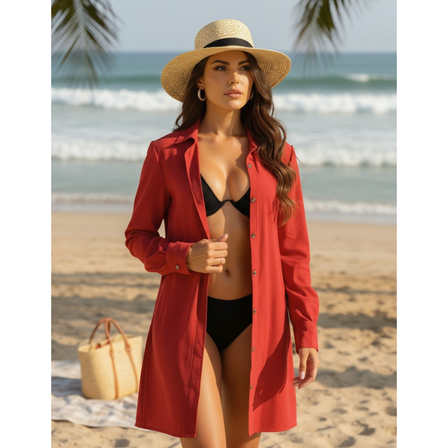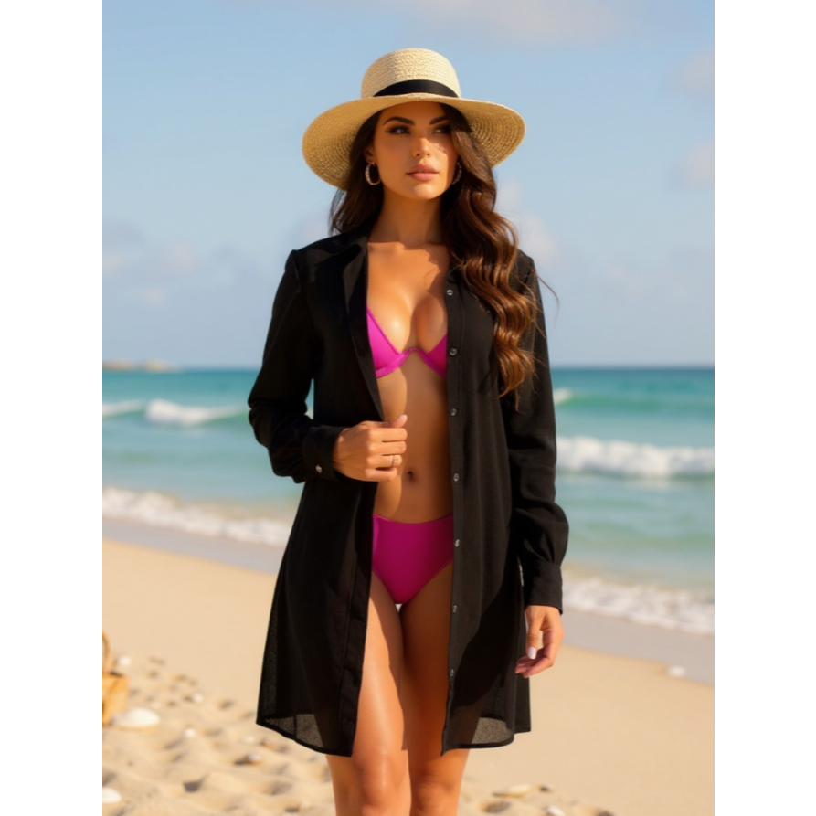 Saída De Praia Feminina Quimono Chemise Camisão Manga Longa Tendência Moda Verão