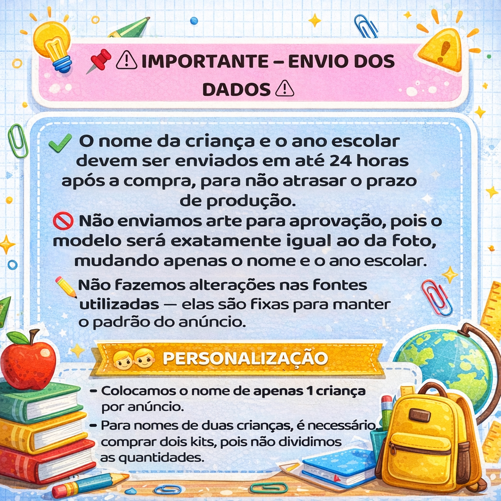 Kit de Etiquetas Escolares Personalizadas Adesivas - Fazemos Todos os Temas - Volta as aulas