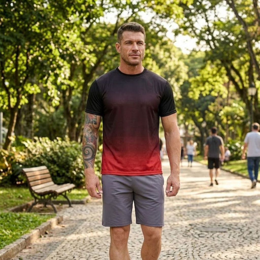 Camisas Camisetas Dry-Fitness Manga Curta Dgrade Masculina Casual-Treino-Academia-Esportes