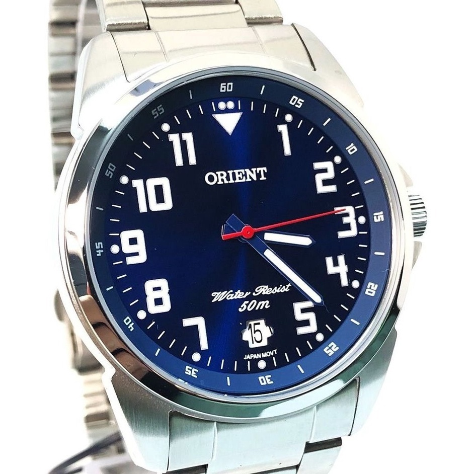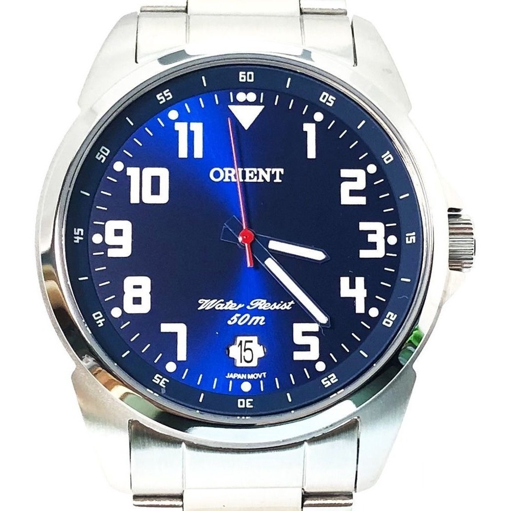 Relogio Orient Masculino Prata Fundo Azul Mbss1154a D2sx