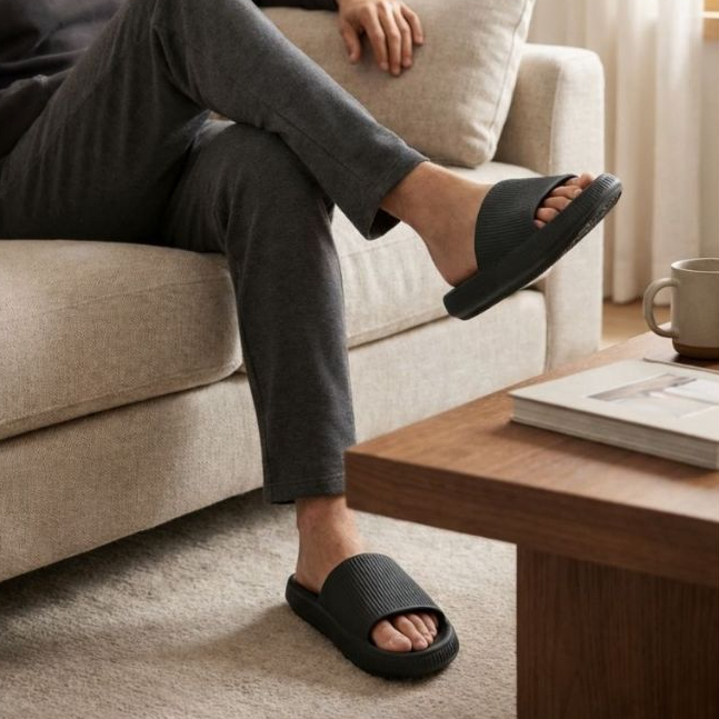 Slide Masculino Tipo Nuvem Preto comfortavel Secagem Rápida