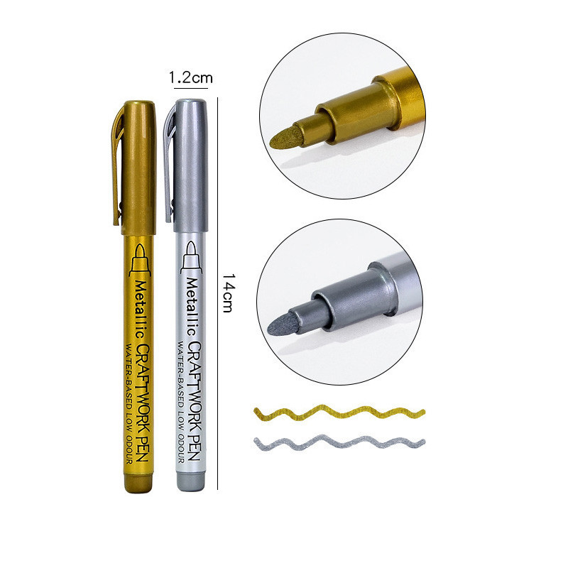 1/2Pcs Canetas Marcadoras Metálicas À Prova D'água Marcadores De Arte Em Prata Dourada Material Escolar De Pintura