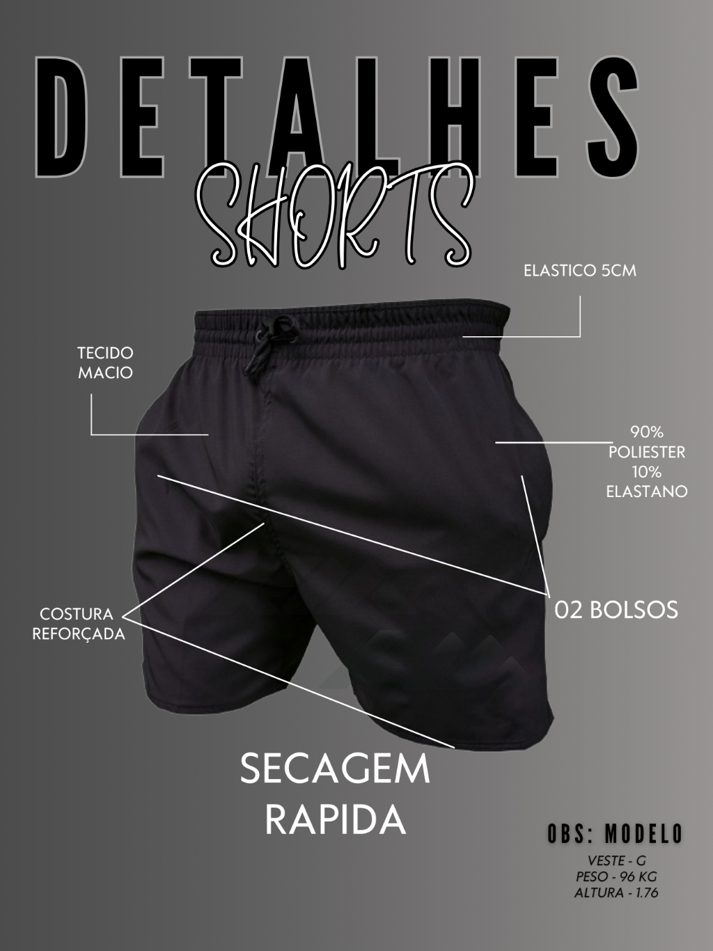 Shorts Liso Bermuda Tactel Elastano Tactel DRY-FIT Mauricinho Preto Azul Cinza Verde Vermelho