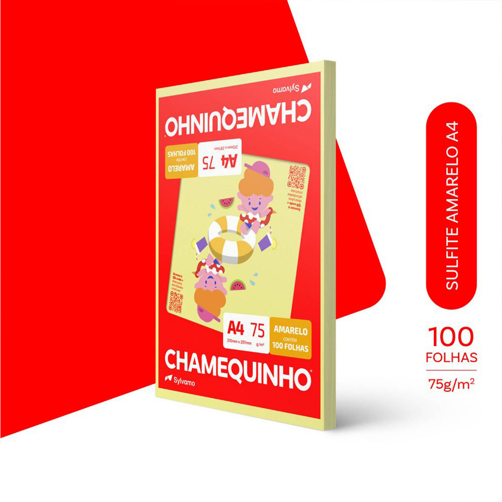 Papel sulfite A4 75g Amarelo 210x297 com 100 folhas Chamequinho
