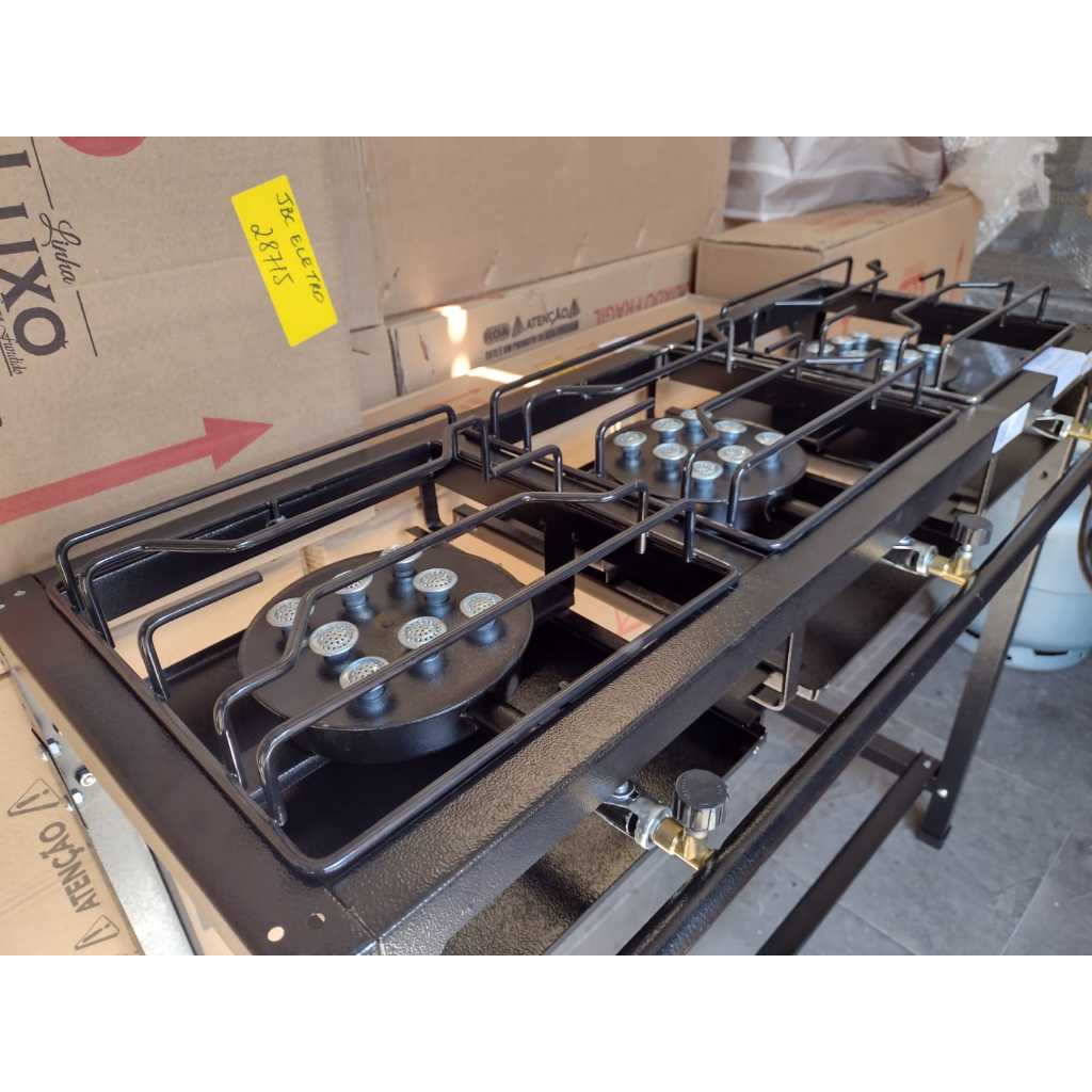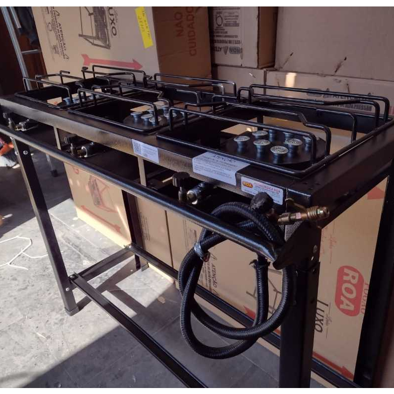 Fogão Industrial 3 Bocas Alta Pressão Preto c/ Mangueira e Registro