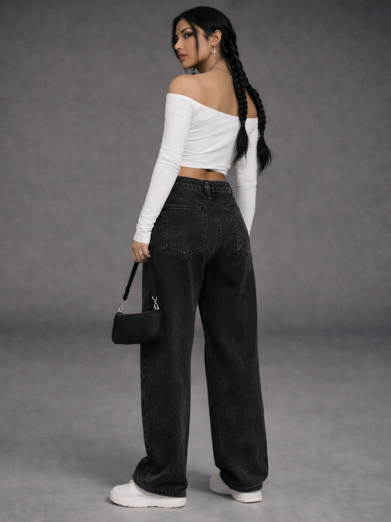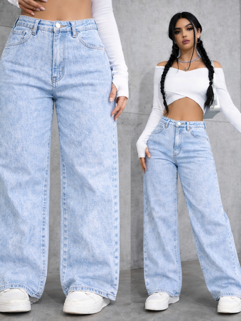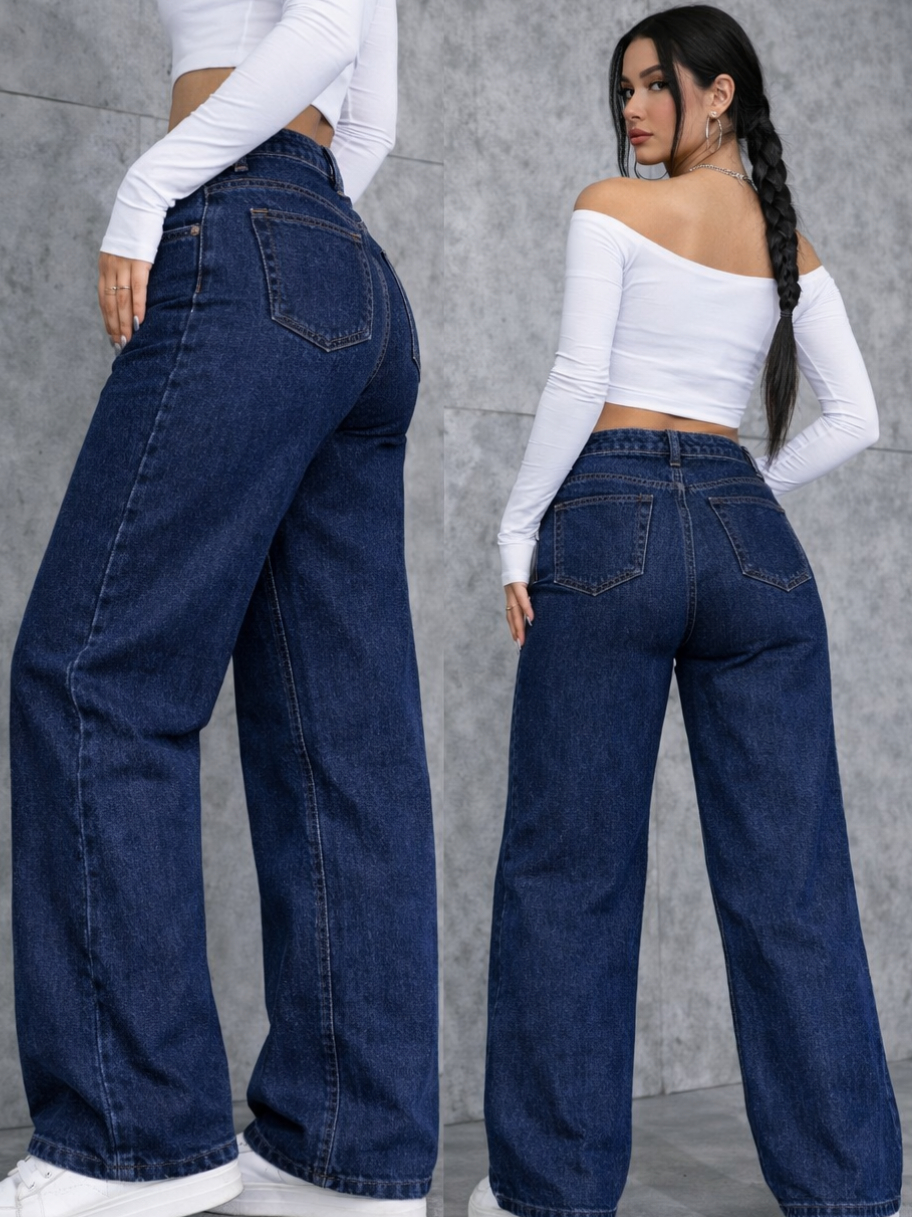 Calça Wide Leg Jeans Feminina Marmorizada Cintura Alta 34 ao 46 Pantalona Levanta Bumbum Perna Larga