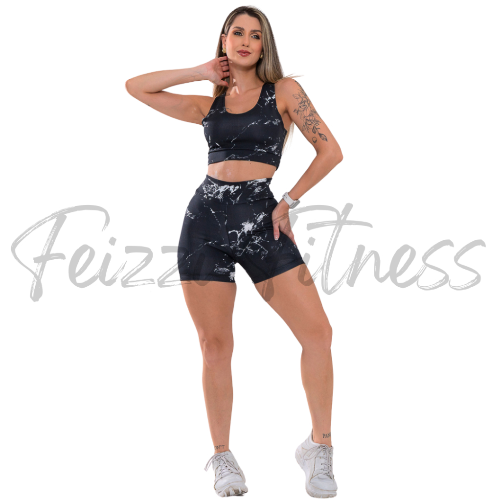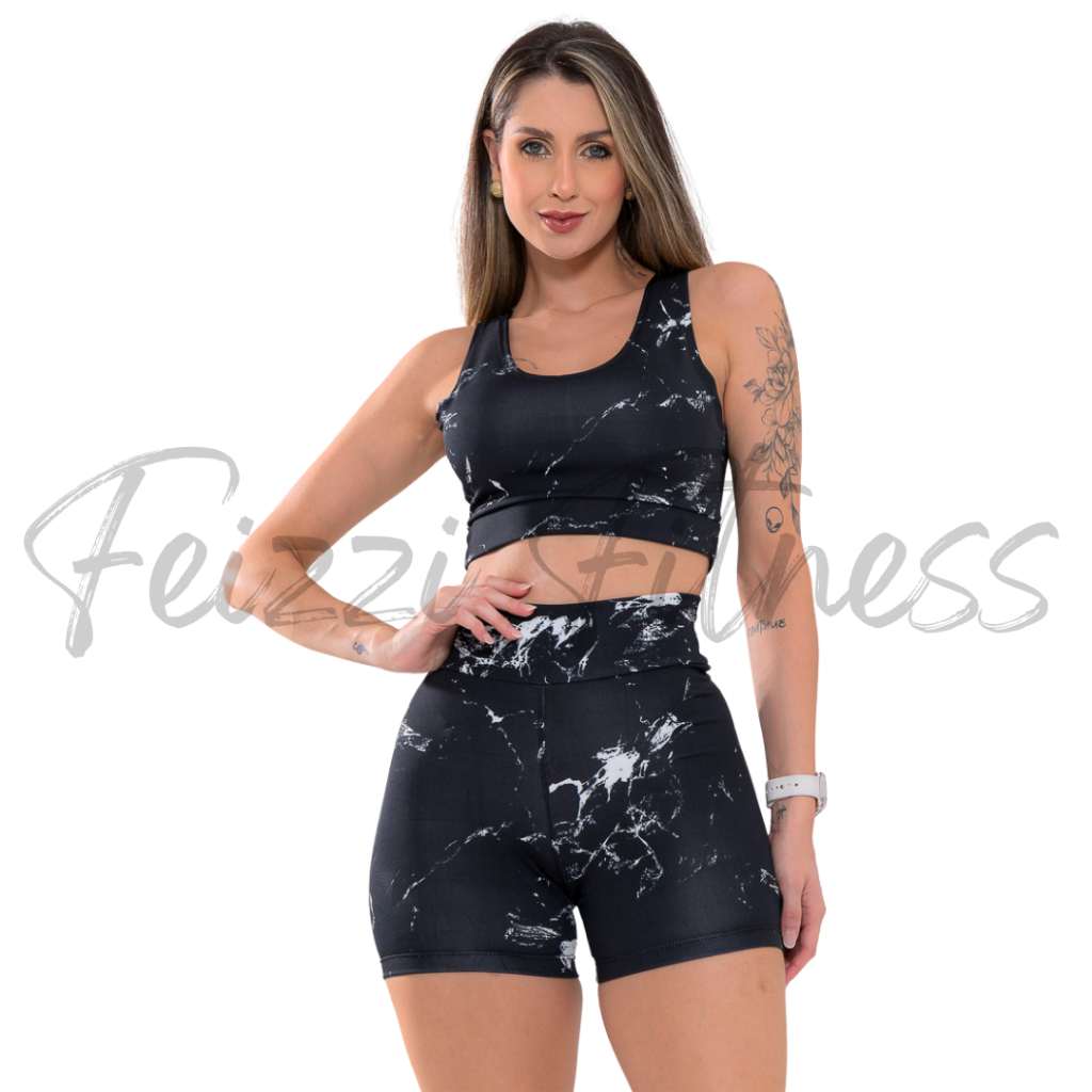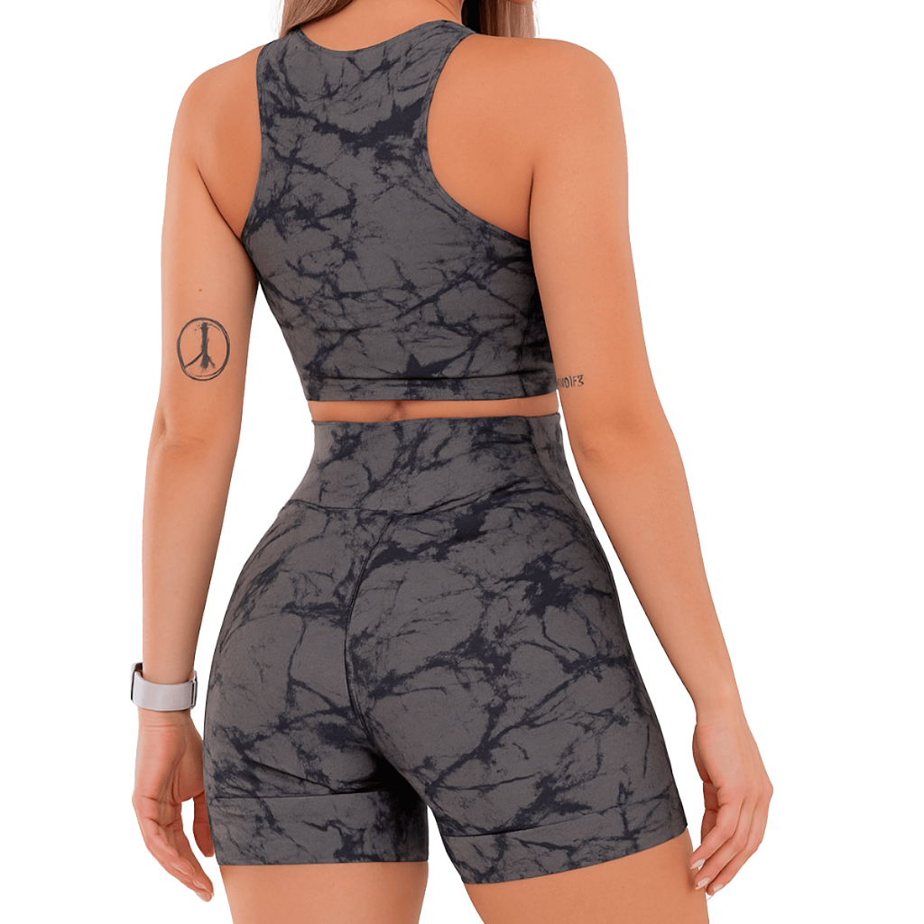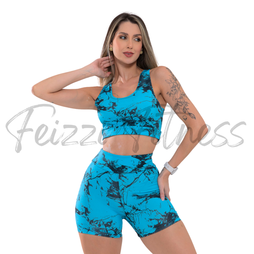 Kit Conjunto Tie Dye Feminino Academia Tope + Short Cintura Alta Degrade Rajado