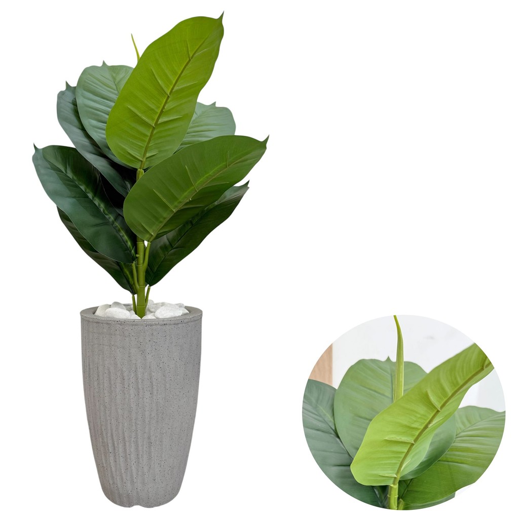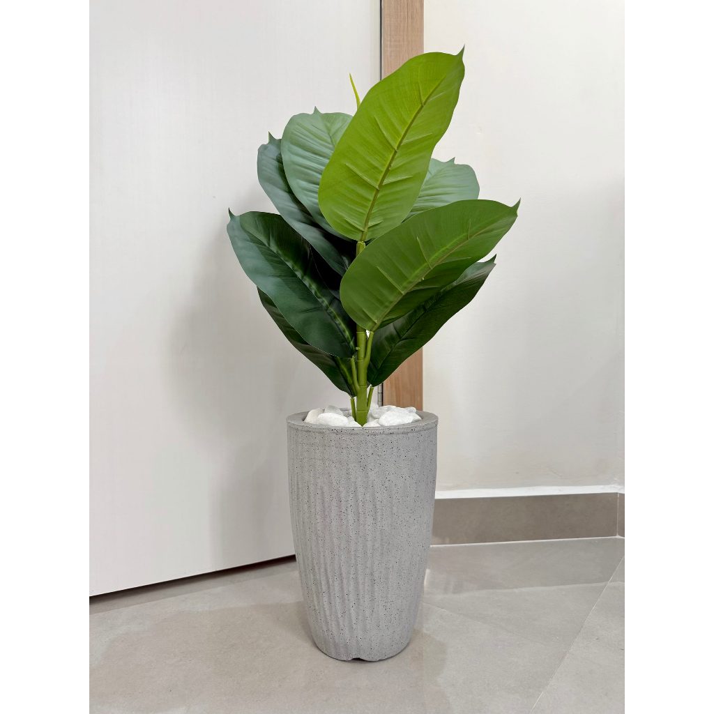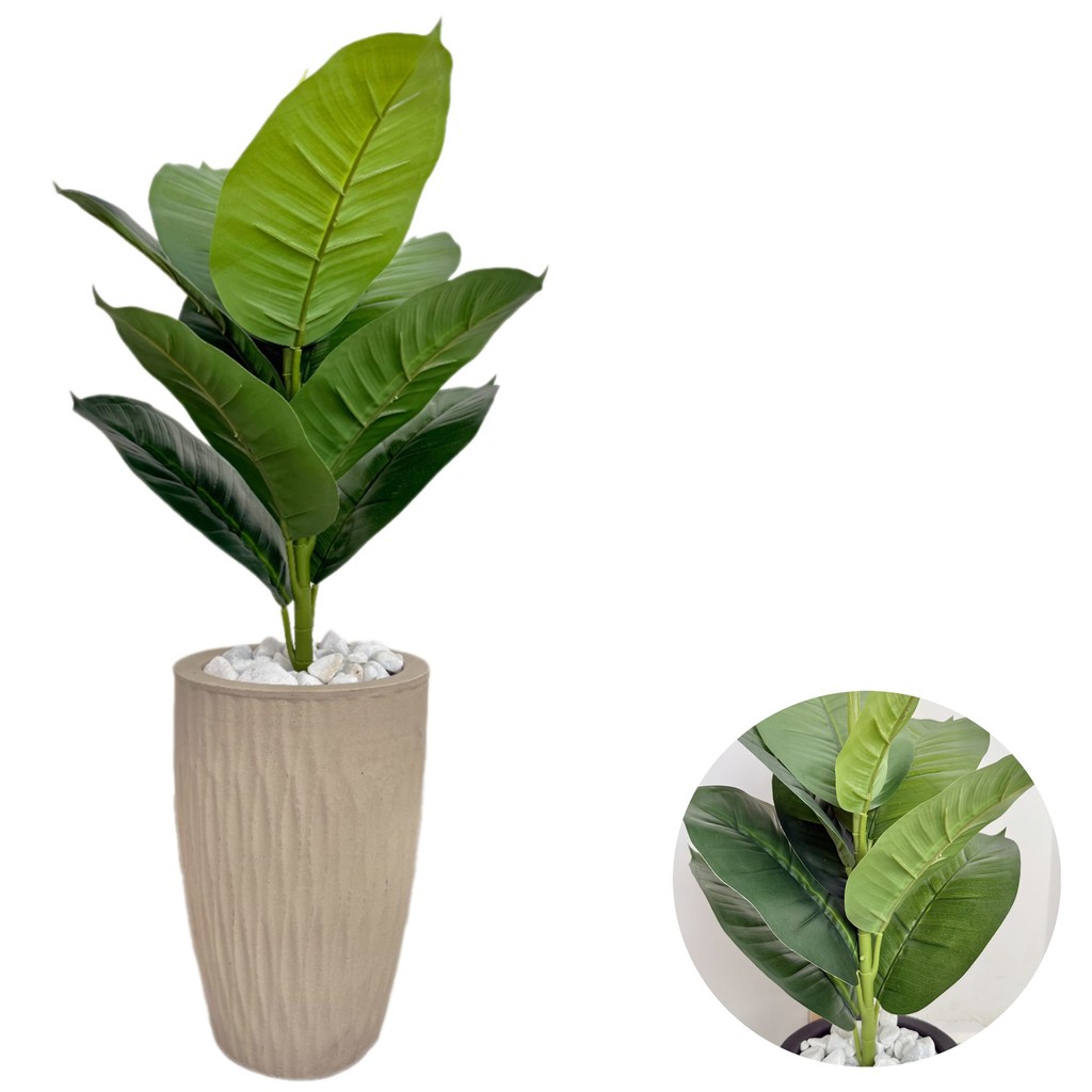 Ficus Lyrata Artificial Com Vaso Ondulado E Pedras Decoração 70cm