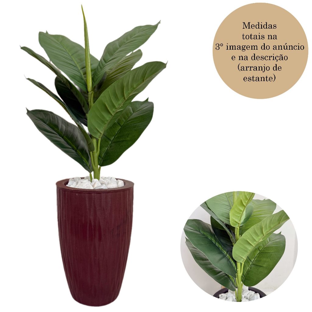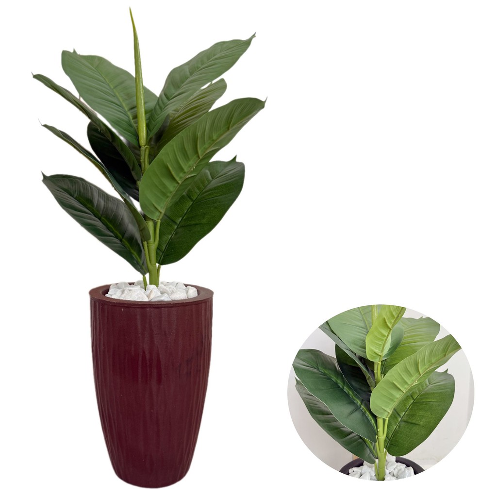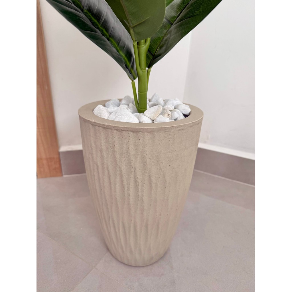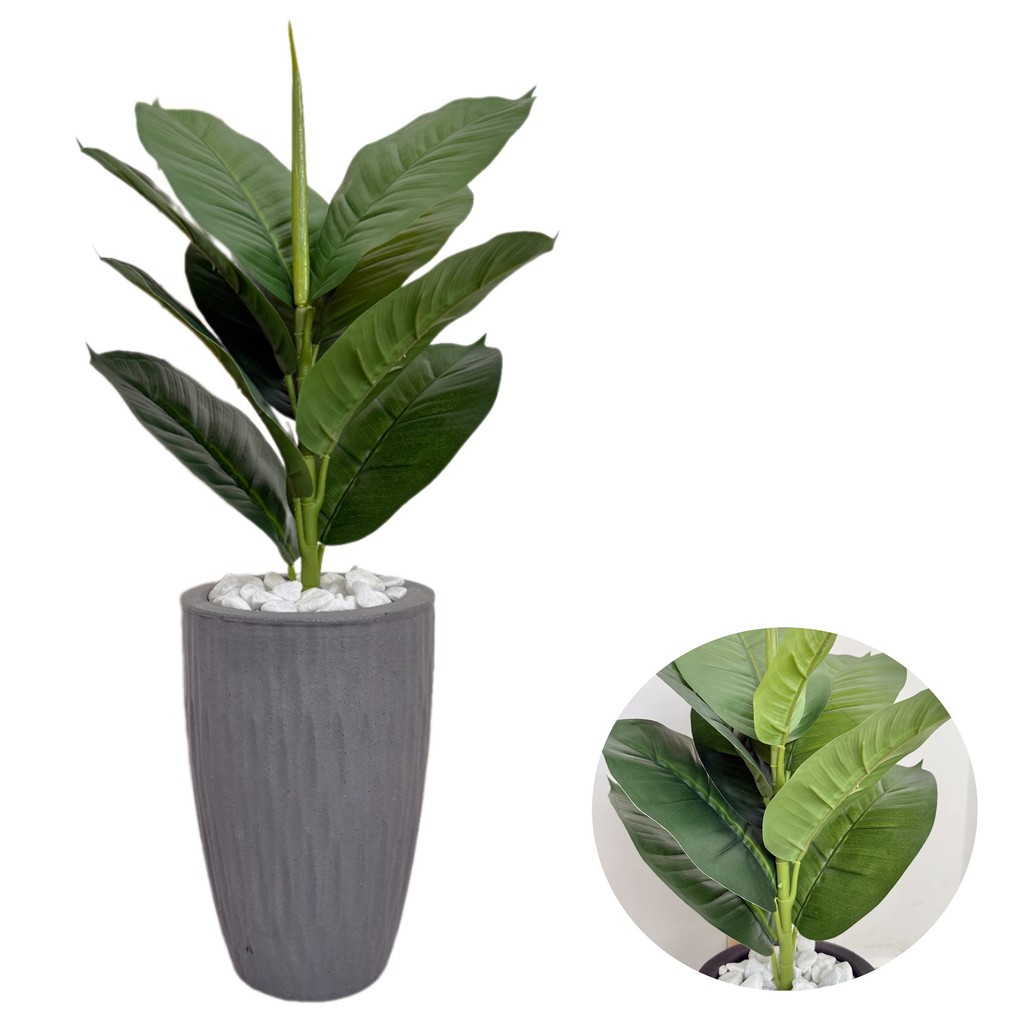 Ficus Lyrata Artificial Com Vaso Ondulado E Pedras Decoração 70cm