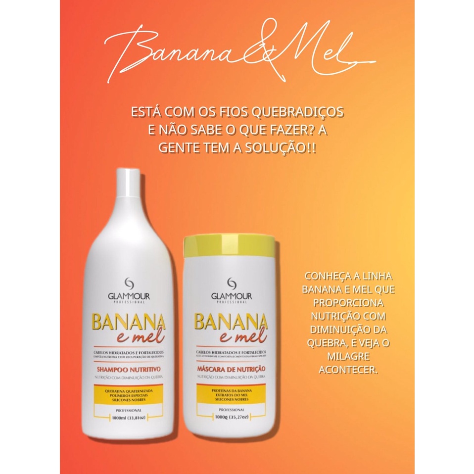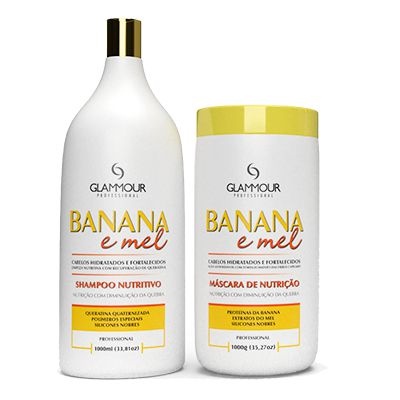 FRETE GRÁTIS - Shampoo e Máscara - Linha Banana e Mel 2x1ml - Glammour Professional
