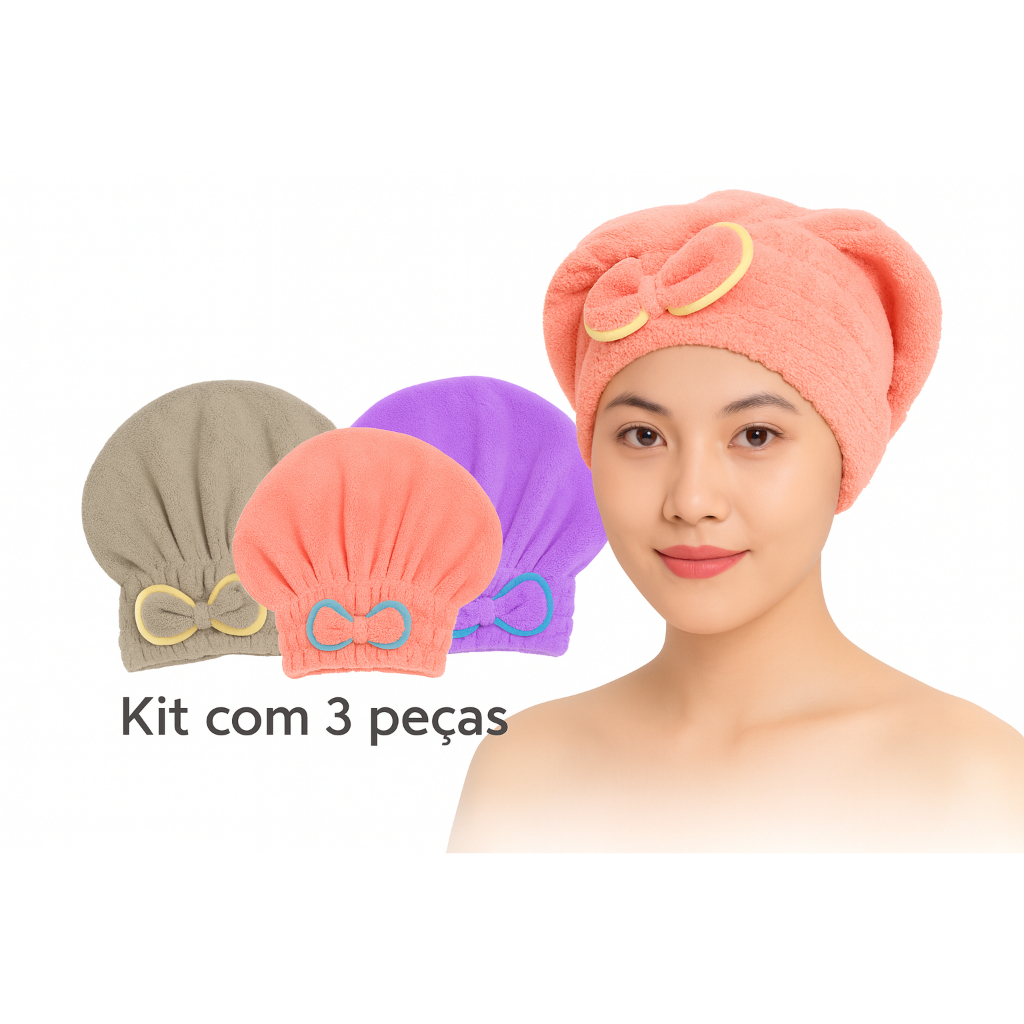 Touca Toalha De Secar Cabelo Pós Banho Secagem Rápida