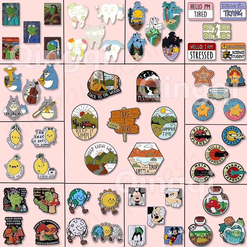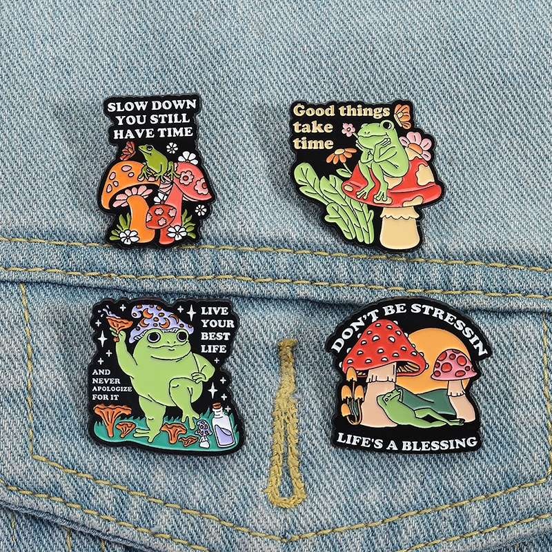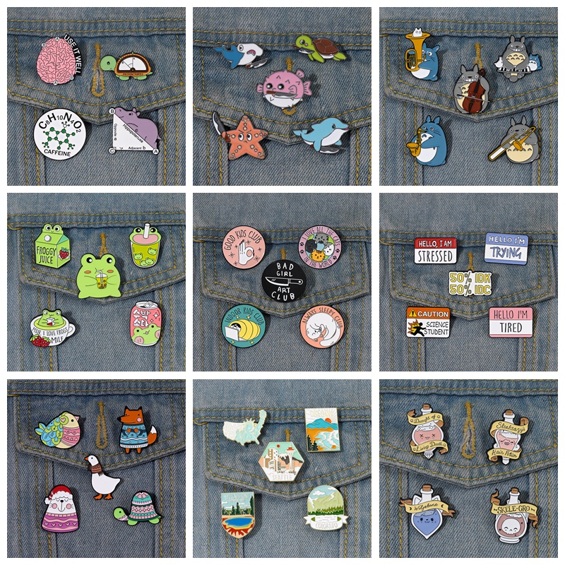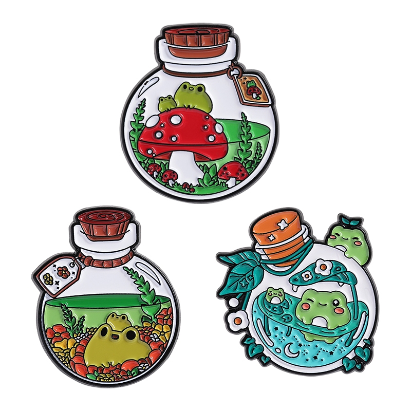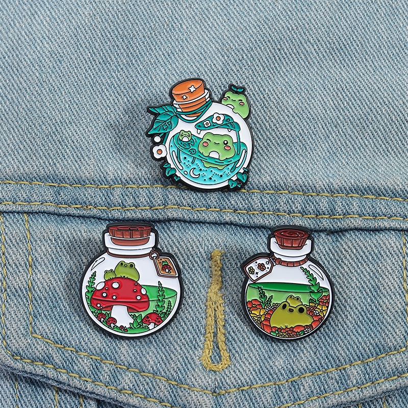 3-7 Pçs/Set Animal Dos Desenhos Animados Esmalte Pinos Bonito Sapo Aventura Broche Lapela Pin Emblemas Planta Criativa J