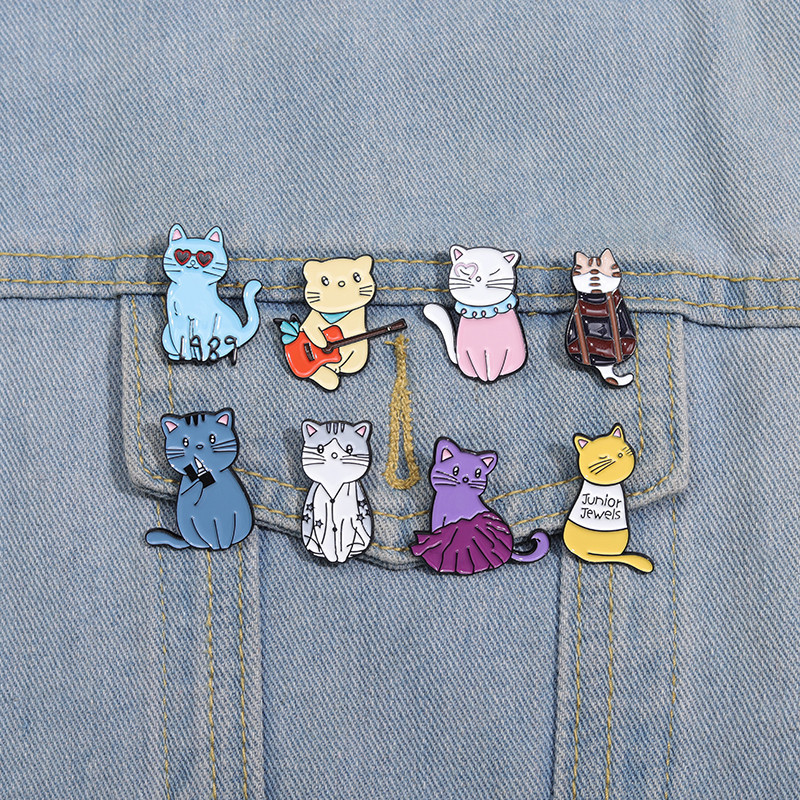 Engraçado Broche De Esmalte De Gato Cartoon Crachás Mochila De Animais Acessórios De Roupas Presentes