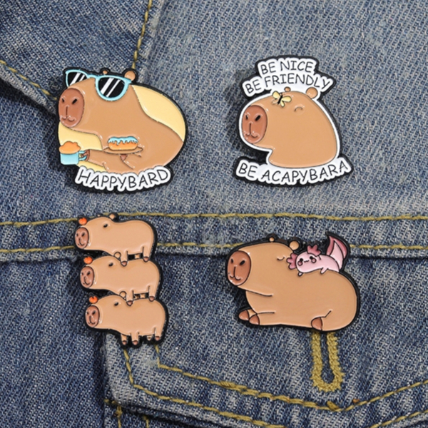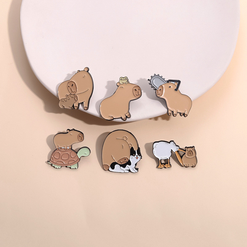 Engraçado Bonito Capivara Hipopótamo Broche Pinos Dos Desenhos Animados Abelha Cappy Emblemas De Metal Mochila Jóias Pre