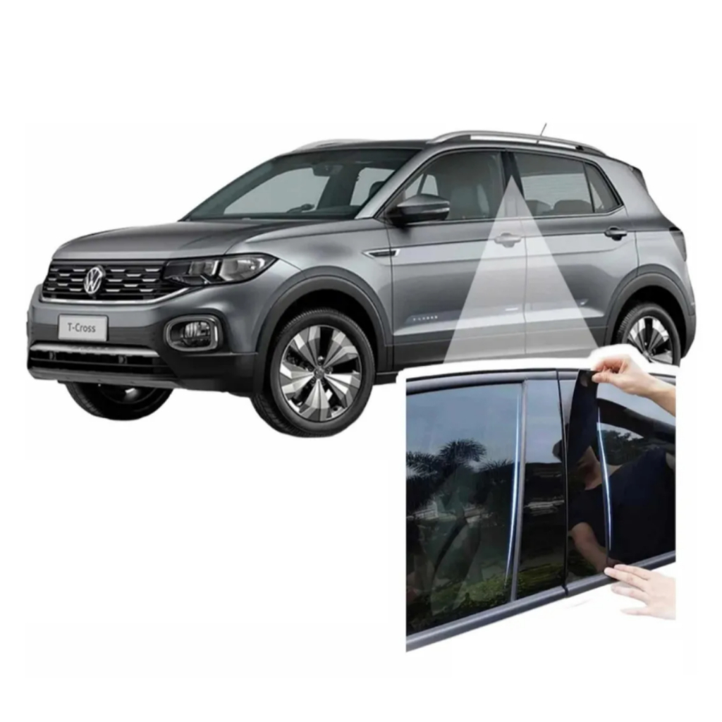 Adesivo Black Piano T-Cross Aplique Coluna Porta 2020 2025 Window Glass