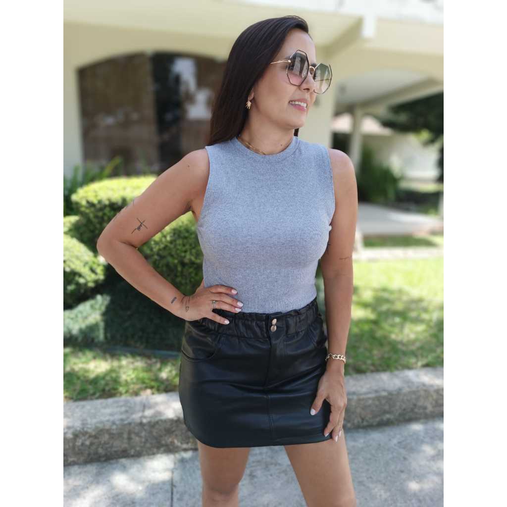 Blusa Regata Canelada Feminina Blogueira Blusinha sem Manga de Verao