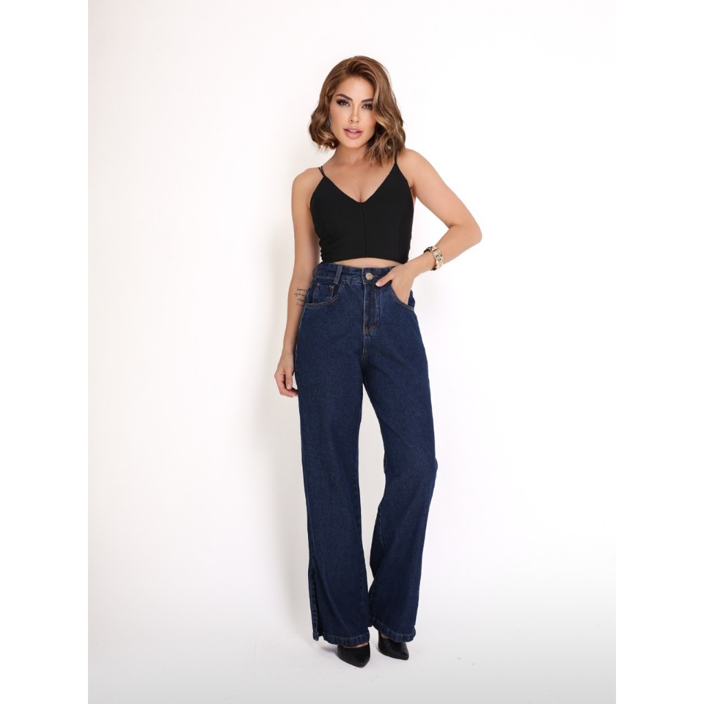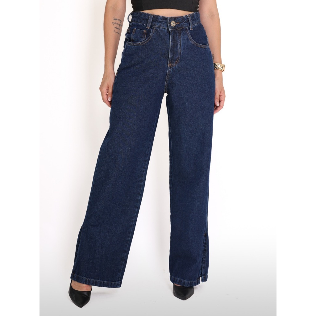 Calça jeans com fenda na barra modelo pantalona nova 2025