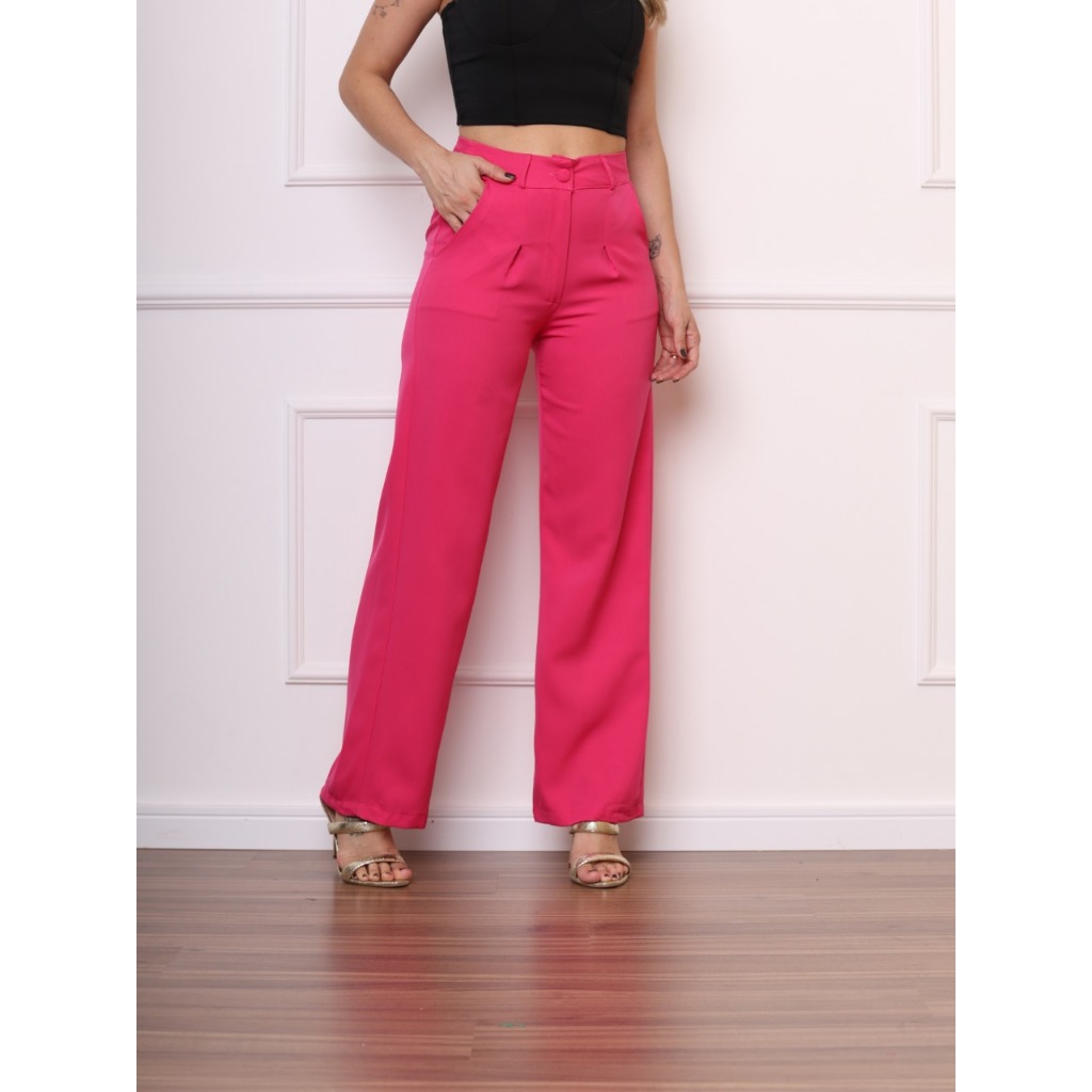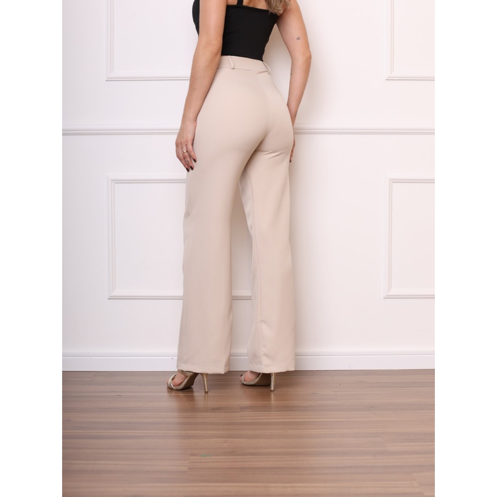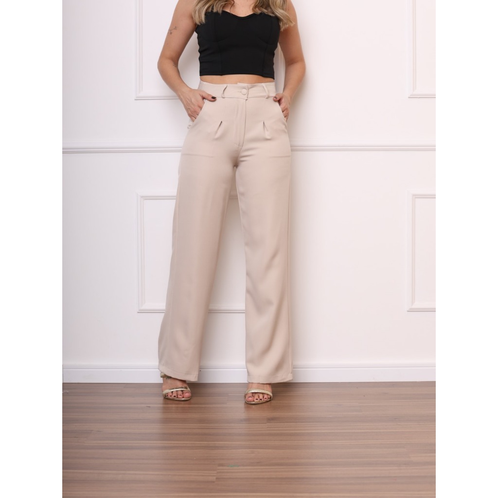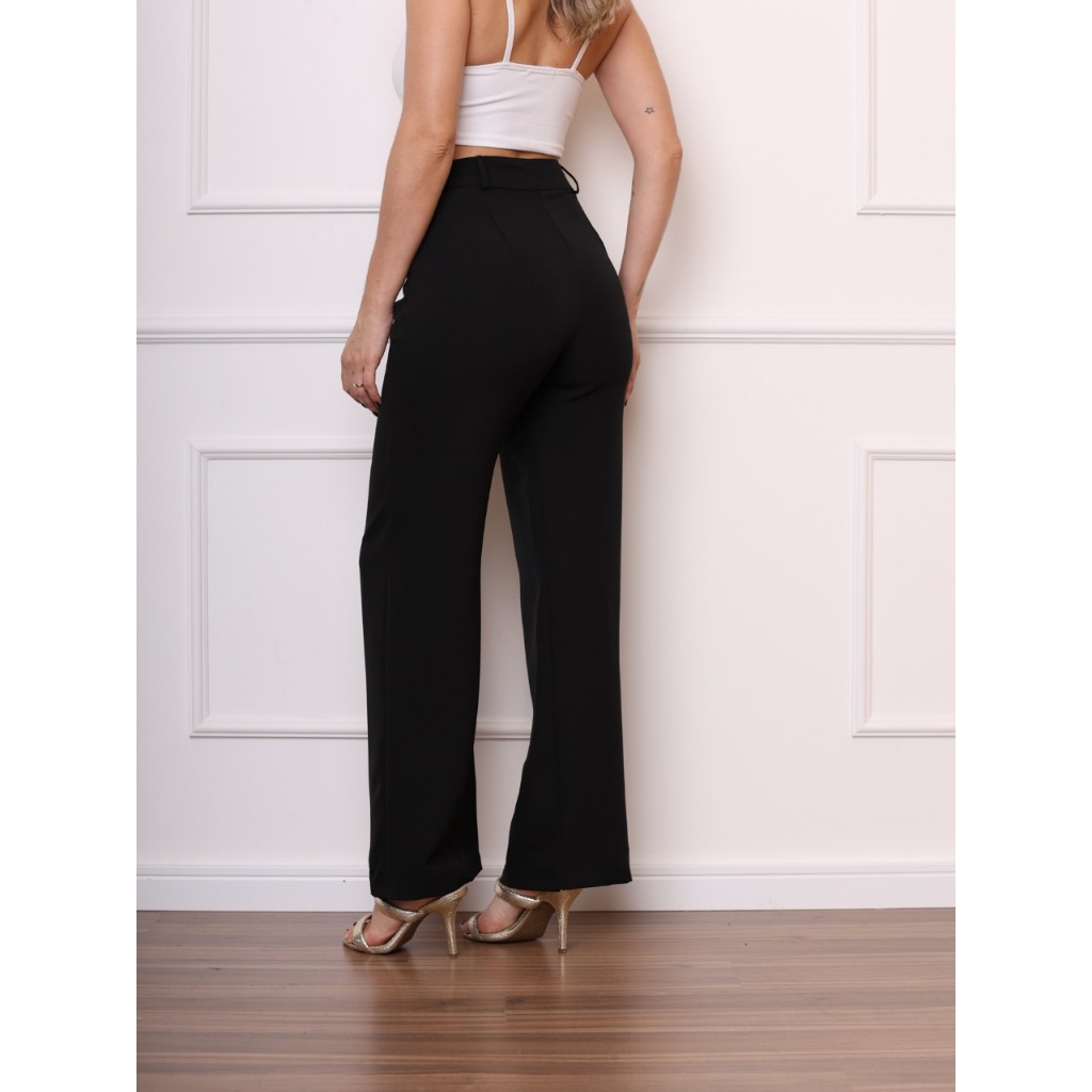 Calça alfaiataria pantalona bolso lateral feminino novo