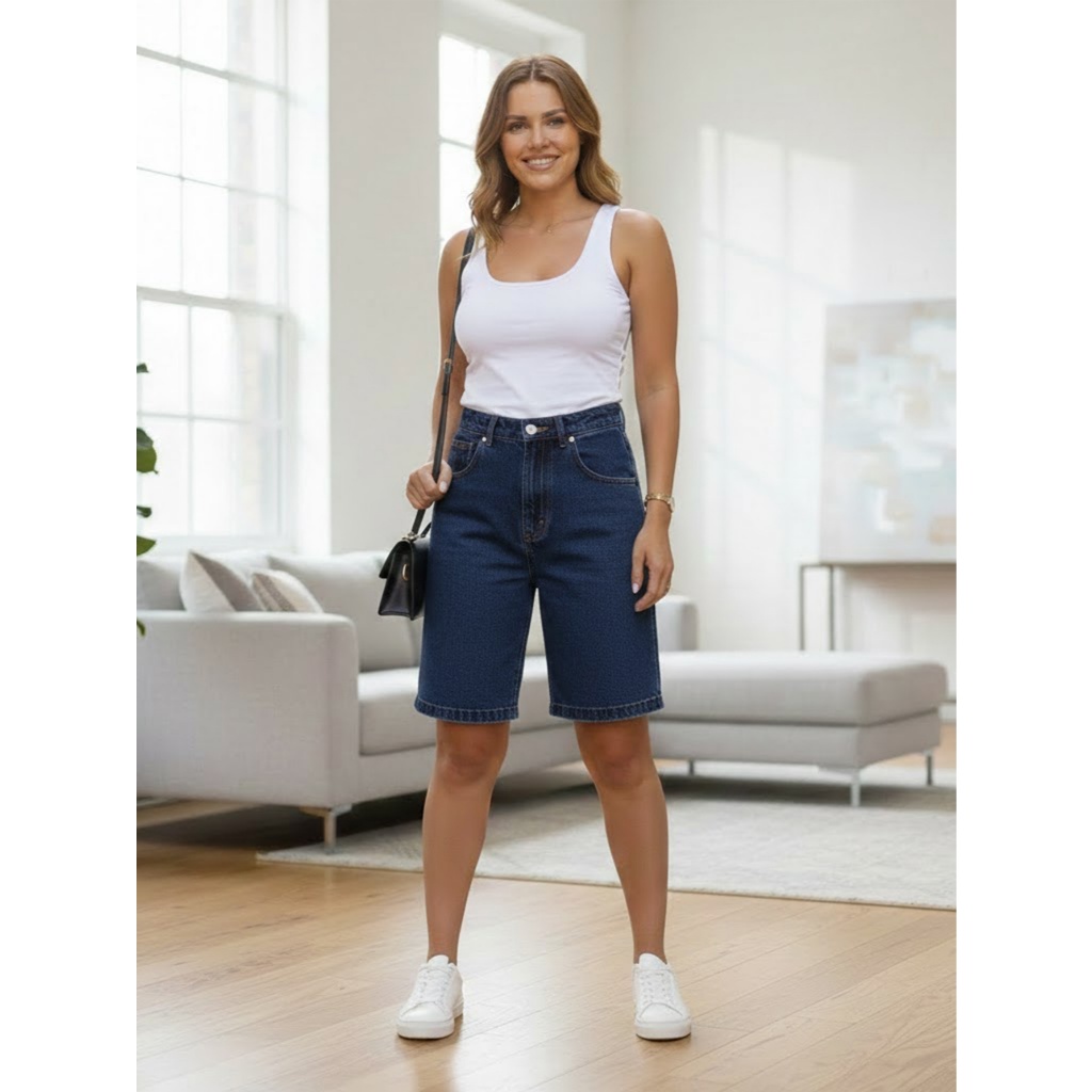 Bermuda Jeans Feminina Jorts Cintura Alta Casual