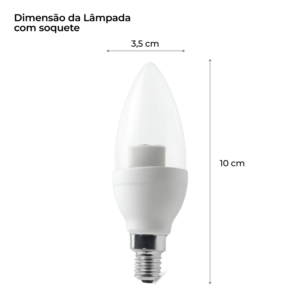 Lâmpada Vela LED Cristal 6W Bivolt E14/E27 – Para Lustres e Abajur Luz Quente/Neutra/Fria Forte e Econômica