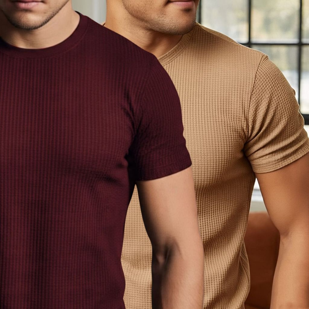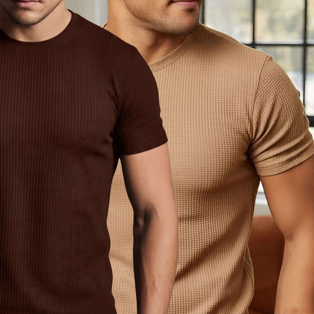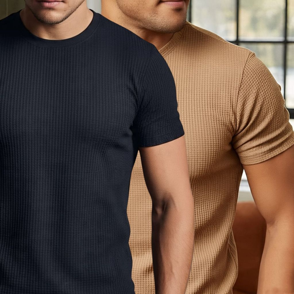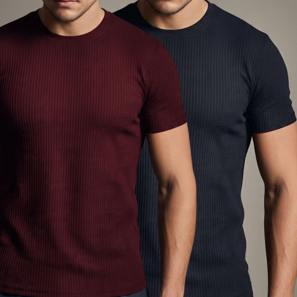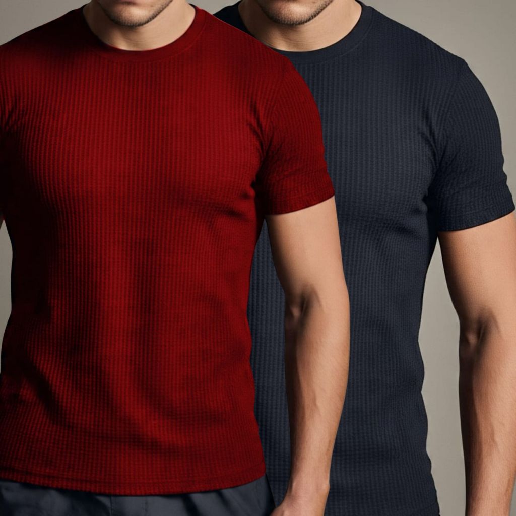 Kit 2 Camiseta Texturizada Casual Básica Reta Texturizada Malha Premium