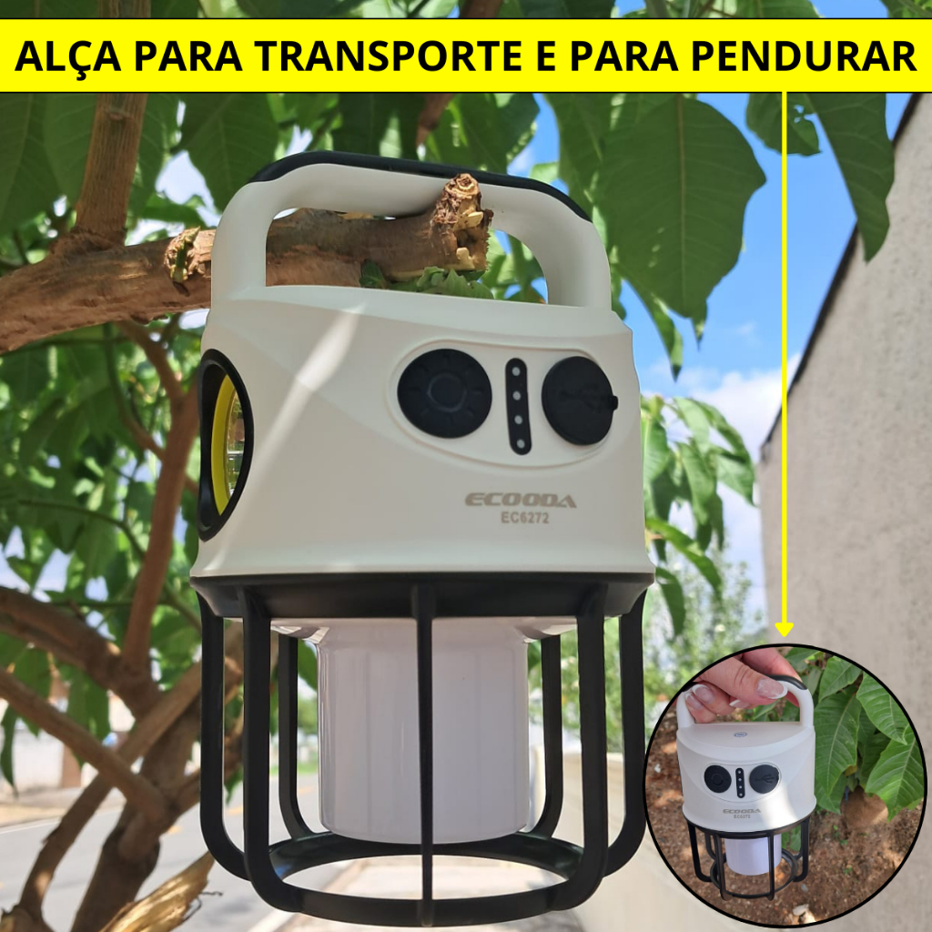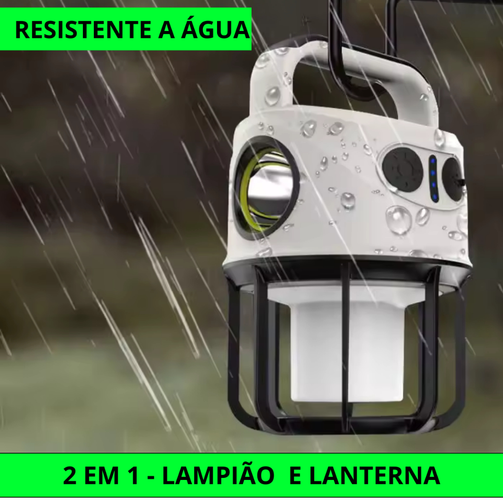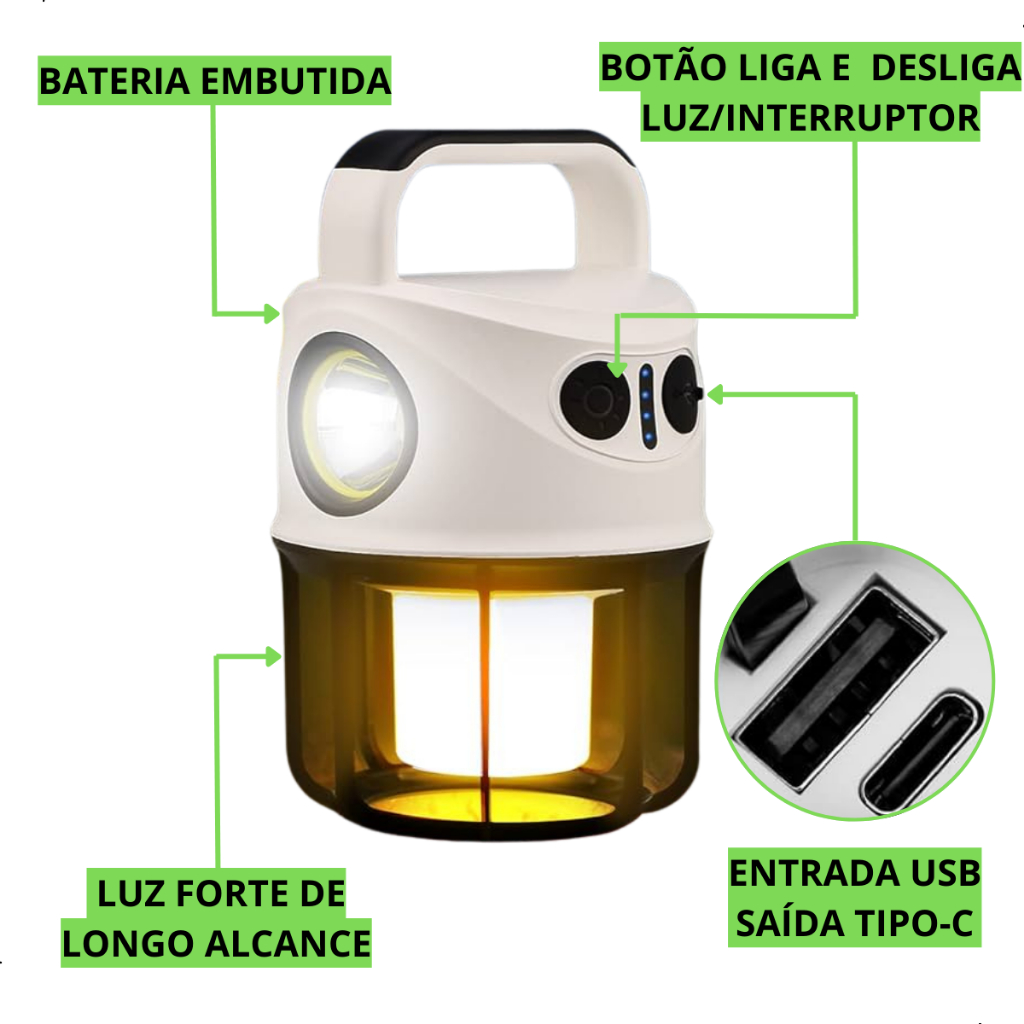 Lampião Luminária Led e Lanterna de Mão Recarregável USB Bateria Camping Aventura Manutenção 2 em 1