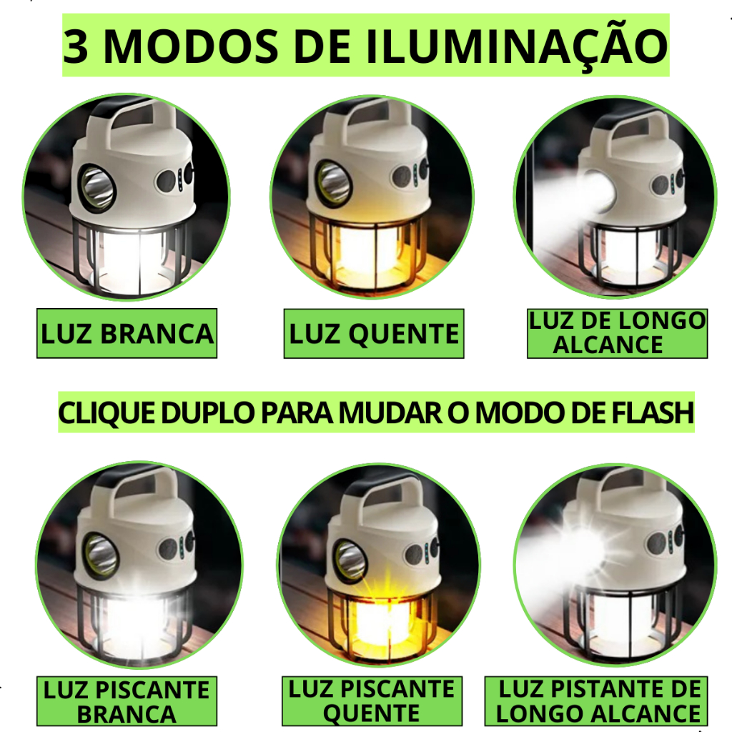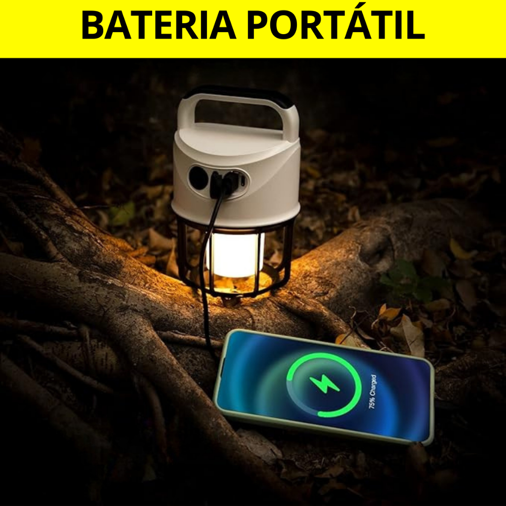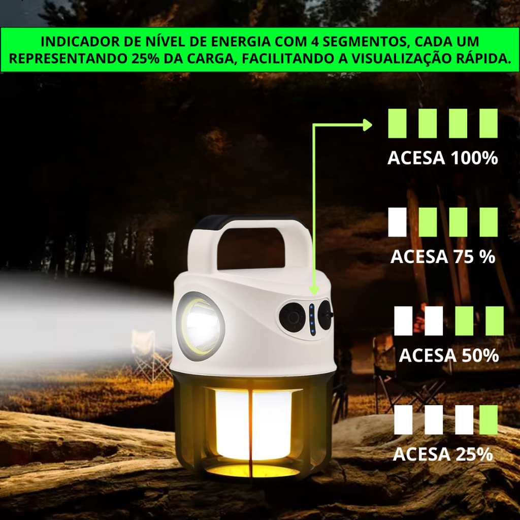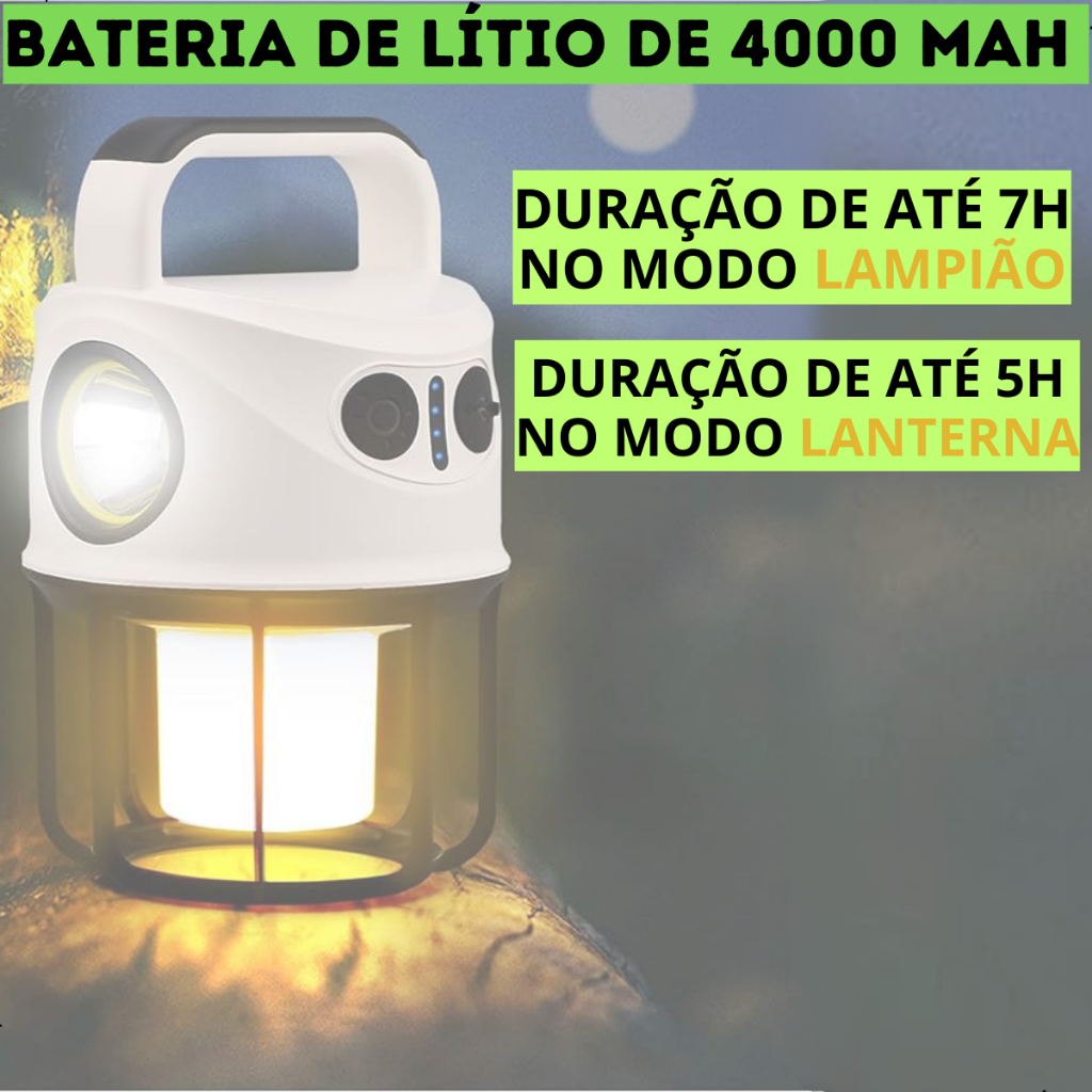 Lampião Luminária Led e Lanterna de Mão Recarregável USB Bateria Camping Aventura Manutenção 2 em 1