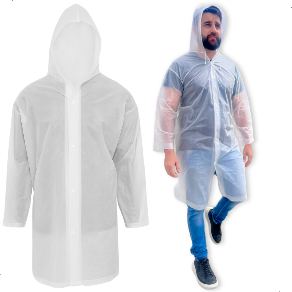 Capa de Chuva EVA Transparente Unissex Adulto Leve Reutilizável Proteção Camping Show
