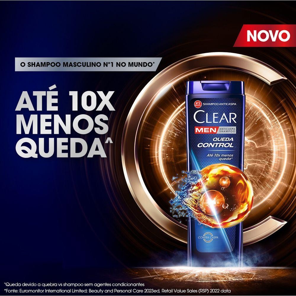 Kit 3 Shampoos Anticaspa Clear Men Queda Control com 400ml