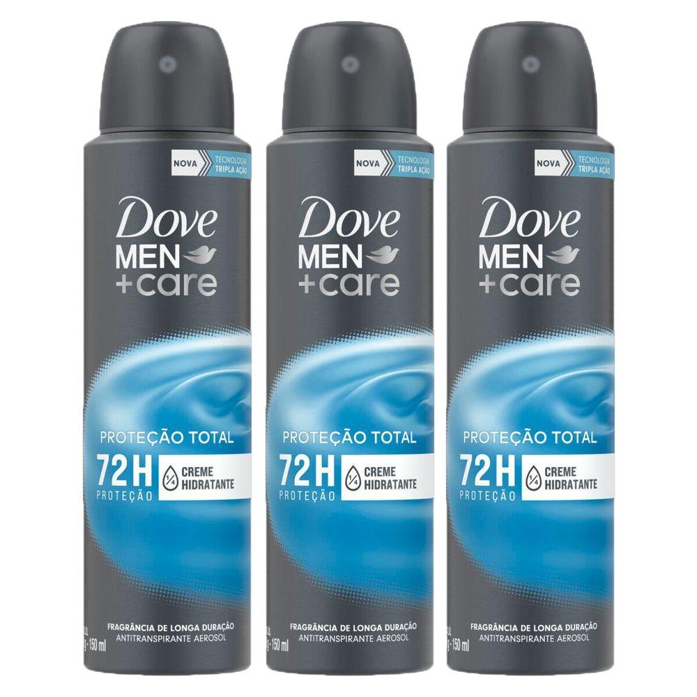 Kit com 3 Desodorantes Antitranspirantes Aerosol Dove Cuidado Total 150ml