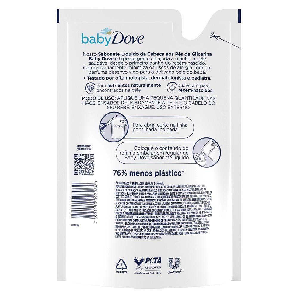 Sabonete Líquido Baby Dove Hidratação Glicerinada da Cabeça aos Pés Refil 400ml