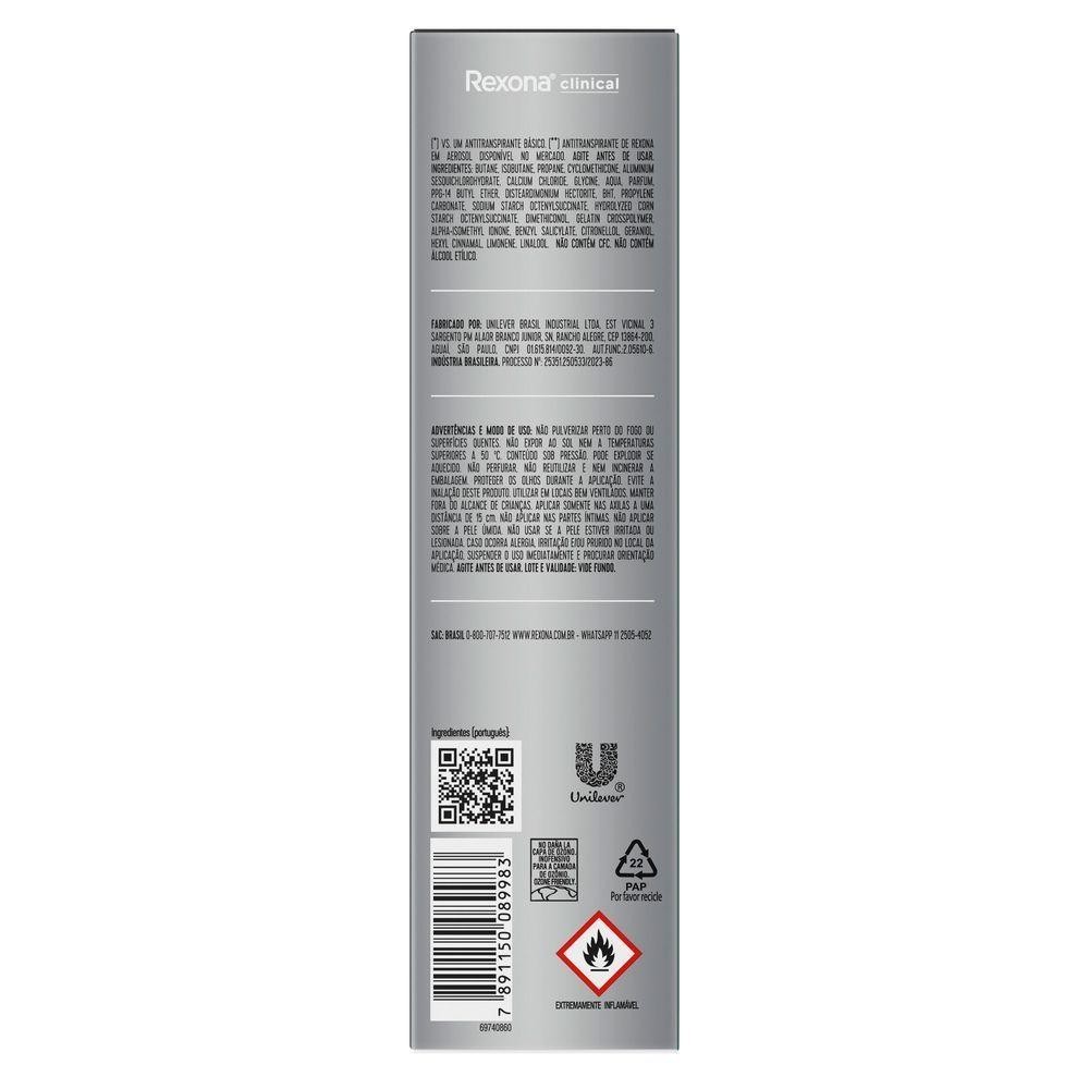 Desodorante Antitranspirante Aerossol Rexona Clinical Intense Fresh 96h 150ml