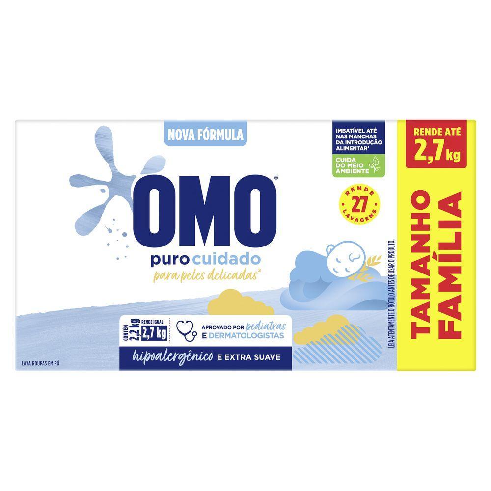 Kit 2 Lava Roupas em Pó Omo Puro Cuidado 2,2kg