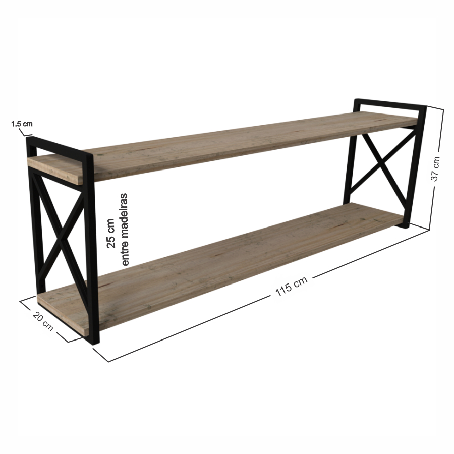 Prateleira Estilo Industrial 20 x até 115 - Varios tamanhos conforme escolha da variaçao