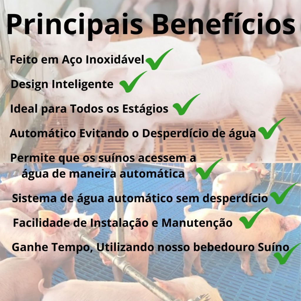 Kit 5 Bebedouro de Porco Automático Chupeta Suíno Bico Aço Inox